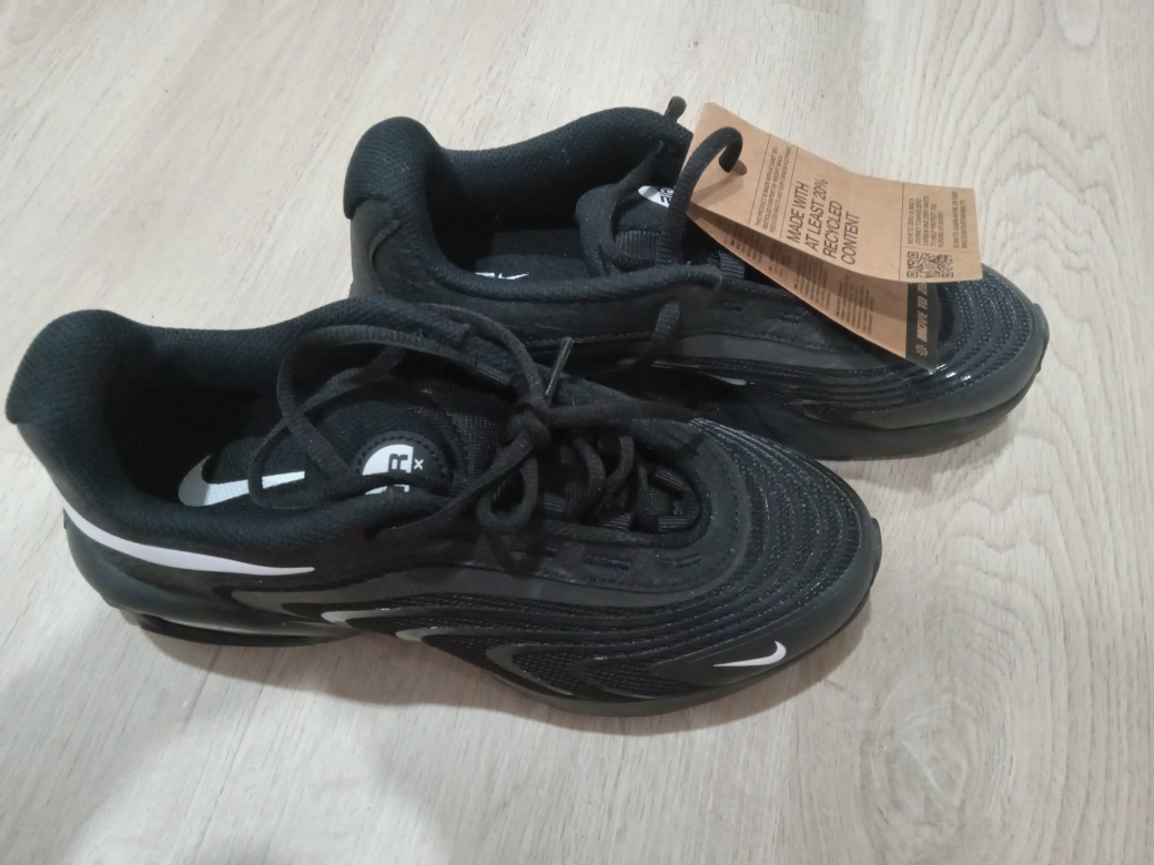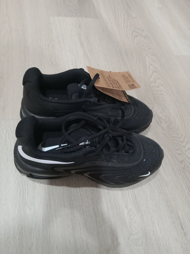 Selling a pair of brand new Nike Air Max TW sneakers in black! These are made with at least 20% recycled content, making them a more sustainable choice. They're super stylish and comfortable, perfect for everyday wear