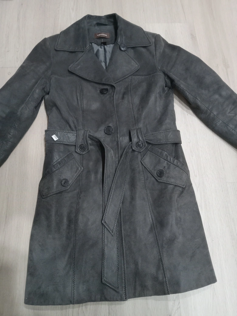 Selling a Danier leather coat in size 2XS. It's a stylish piece that would be a great addition to any wardrobe! The coat features a classic design with a belted waist and button details. It's in great condition and ready for a new home
