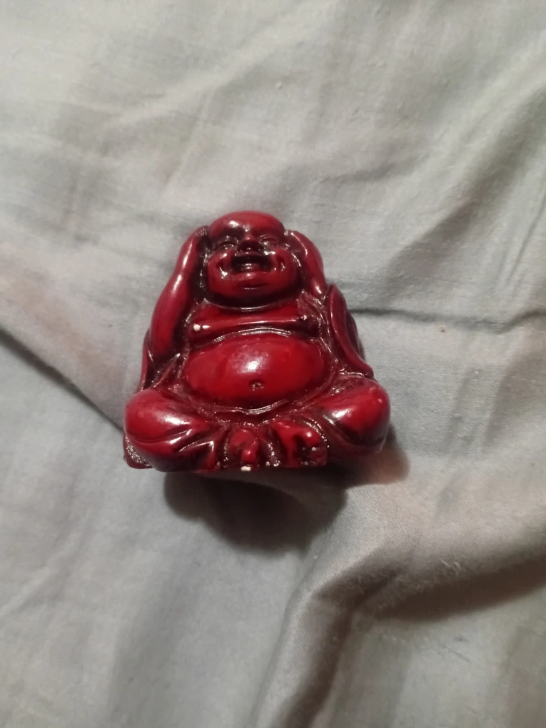 A cute little red Buddha figurine! Perfect for adding a touch of zen to your home or office