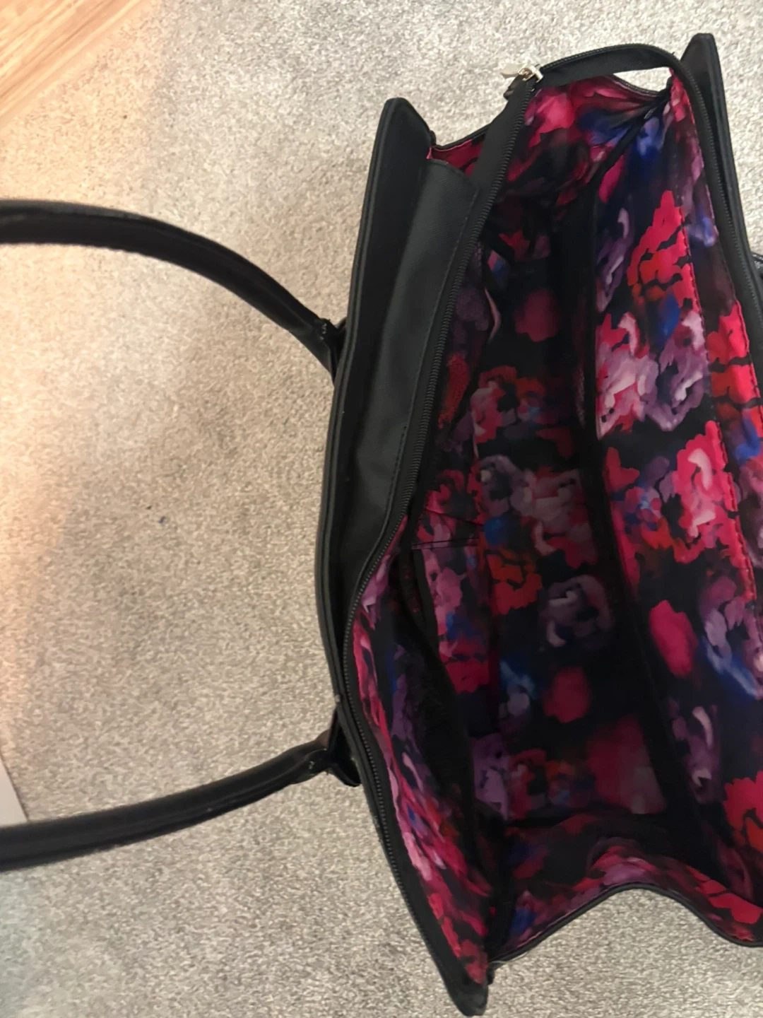 Selling a Mary Kay tote bag in black! It has a zipper closure and a colourful floral lining. It's in good condition and ready for a new home!