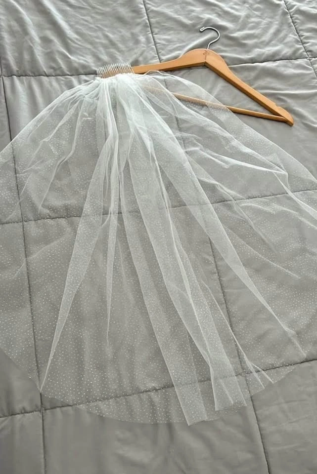 New & beautiful waist length 75cm White / sparkle (sparkles do not fall off) Comb sewn in Pick up as one minute from King George skytrain station Please respect pricing Gos bless! 🫶🏼