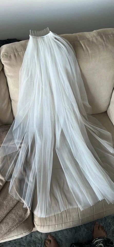 Retail $429. New and flawless. Soft white or ivory avail with comb. 120cm. Please respect pricing God Bless!🫶🏼