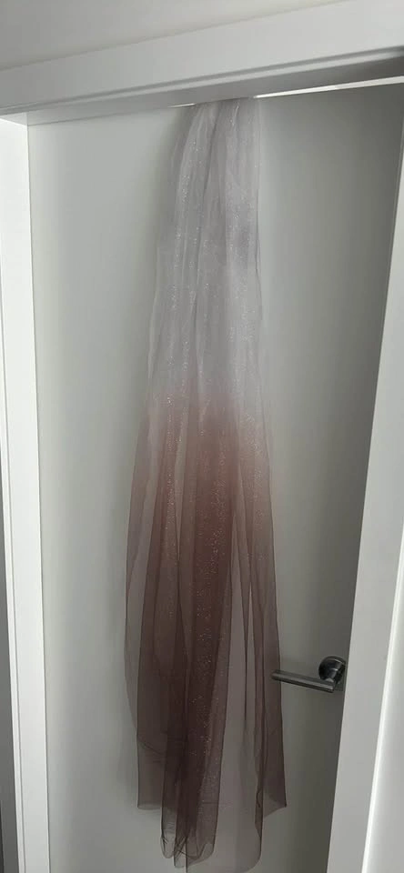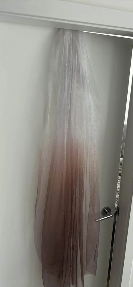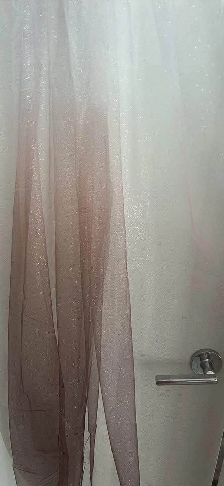 New - the black hew around the top (perfect if your hair is black) Custom Unique fade to pink sparkle Viel Structured/ stretch tulle Sparkles do not fall off Off white / pink avail 150cm Falls to about the ankles (if you’re 5’5 or shorter probably the floor) Please respect pricing God Bless!