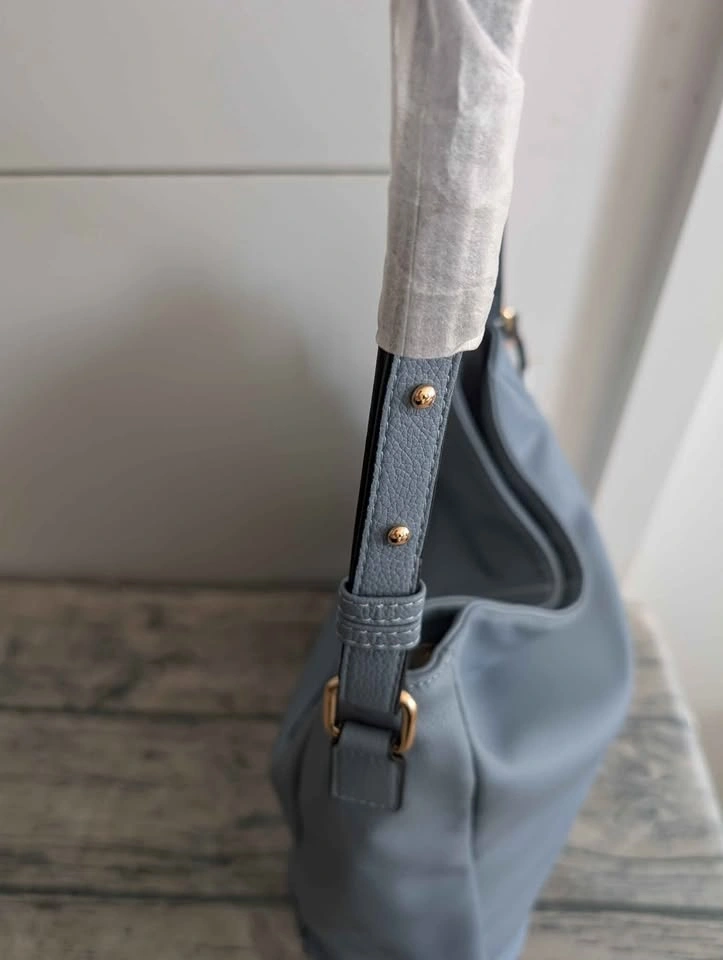 Selling a brand new hobo bag in a beautiful blue-grey colour! This stylish and versatile bag is perfect for everyday use. Size(L*H*W): 10.5*12*4.5 in Location: Regent Park Blvd
