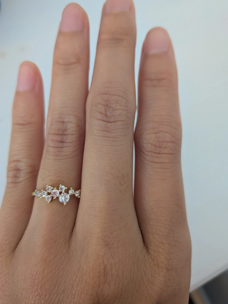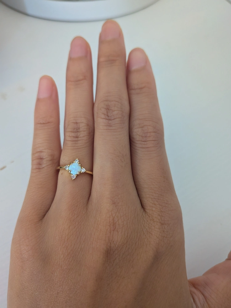 4 pieces of gold toned jewelry for $30 - 1 opal ring - 2 cubic zirconia rings - 1 bracelet Ring Size 4. no price negotiation.