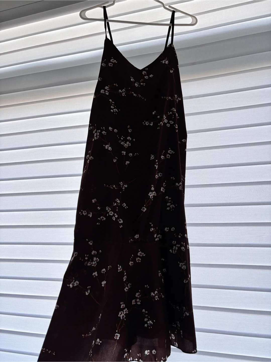 A cute sundress with a floral print! It's a lovely brown colour and perfect for a casual day out. The dress is in great condition and ready for a new home The colour is more like the one in the second picture!