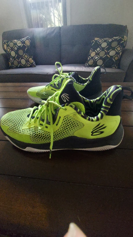 Selling a pair of Curry Flow 8 shoes in a vibrant lime green colour! They are in great condition and ready for a new home. Perfect for basketball or everyday wear
