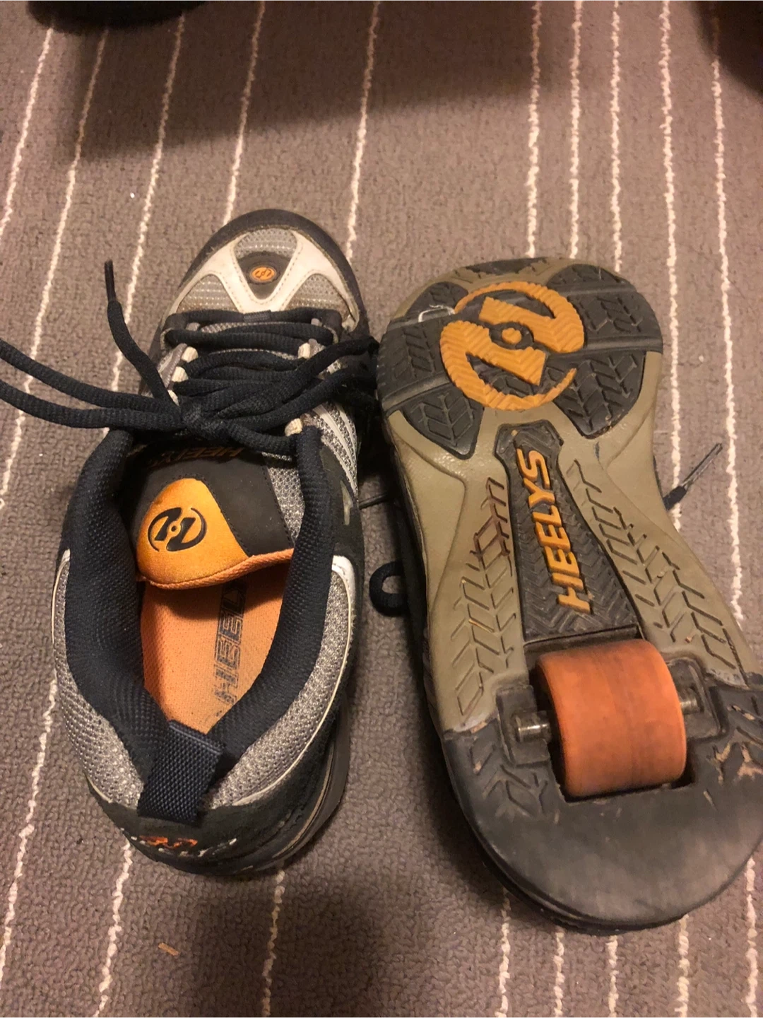 Selling a pair of Heelys roller shoes! They show some signs of wear, but still have lots of life left in them. Perfect for some fun rolling around town. p Please see photos for condition Size 7