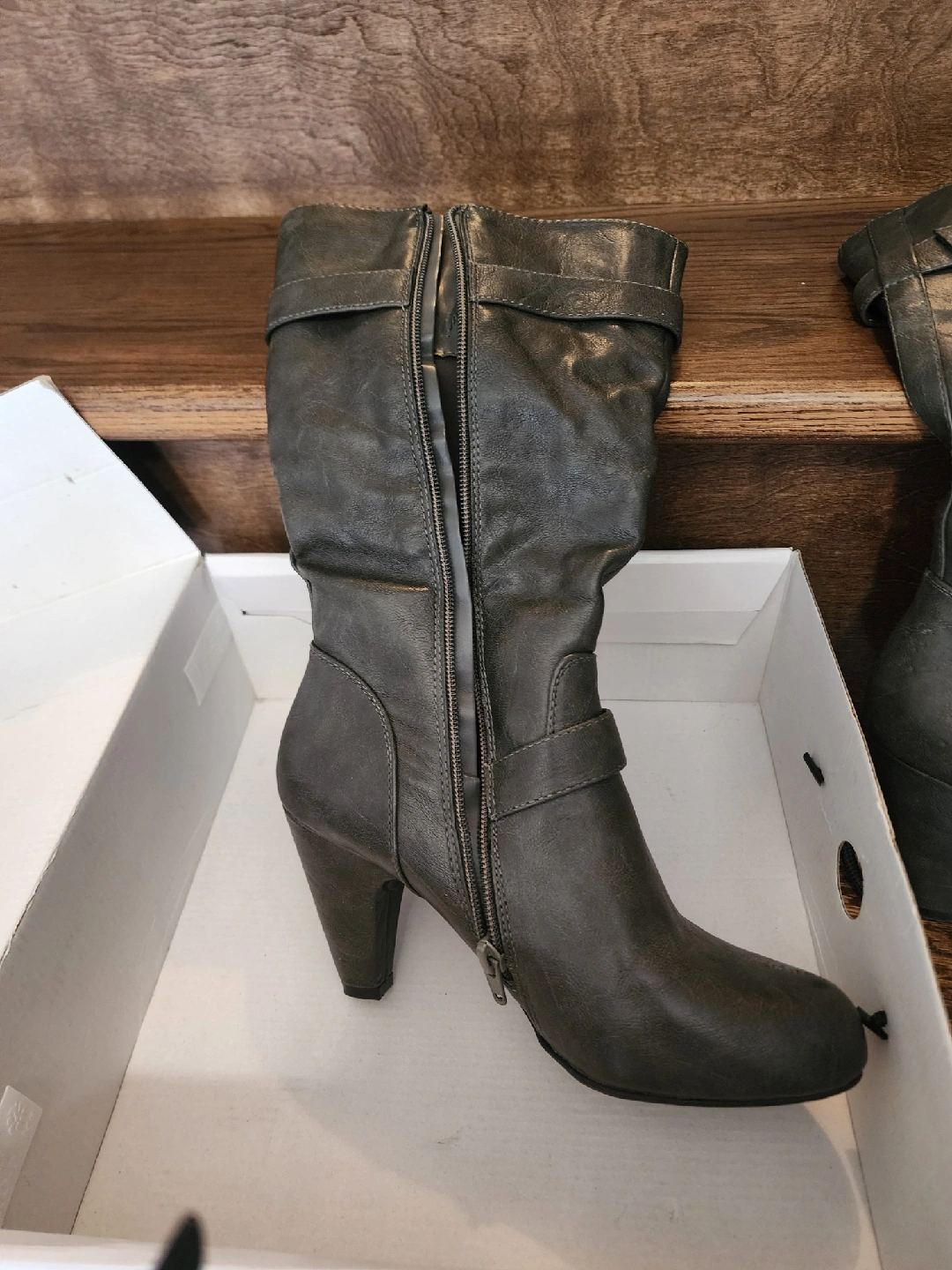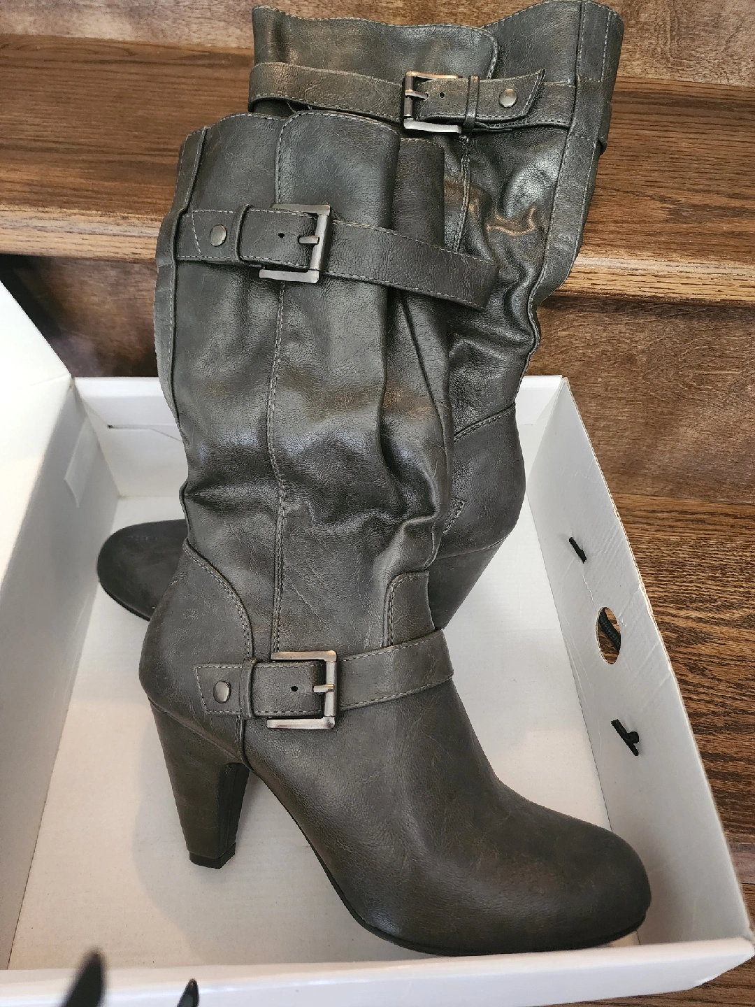 PICKERING!! Selling a pair of Nine West Eriellao Nocciol LE boots in size 8M. These stylish boots feature a heel and buckle detailing. They're in good condition and come with the original box!