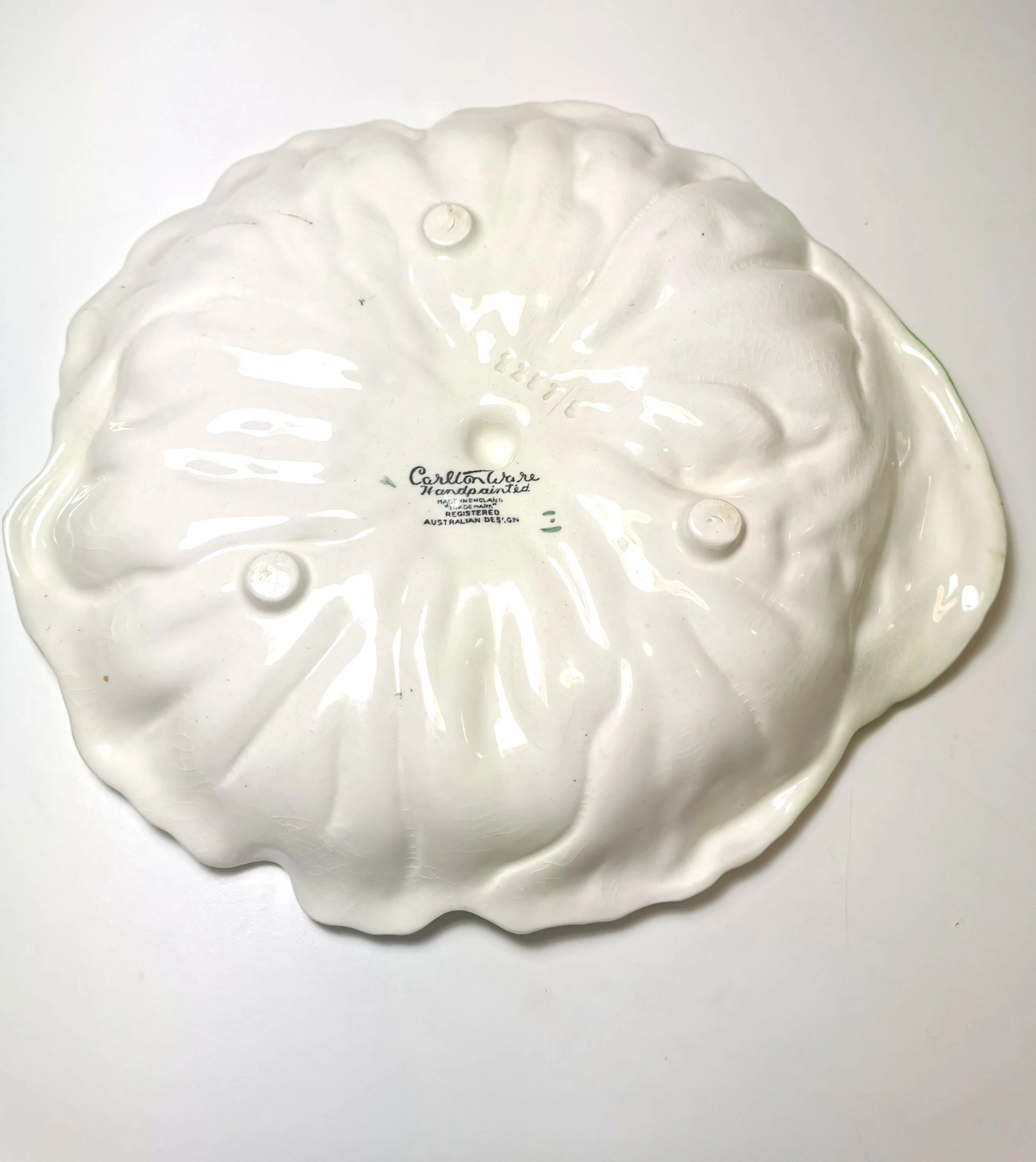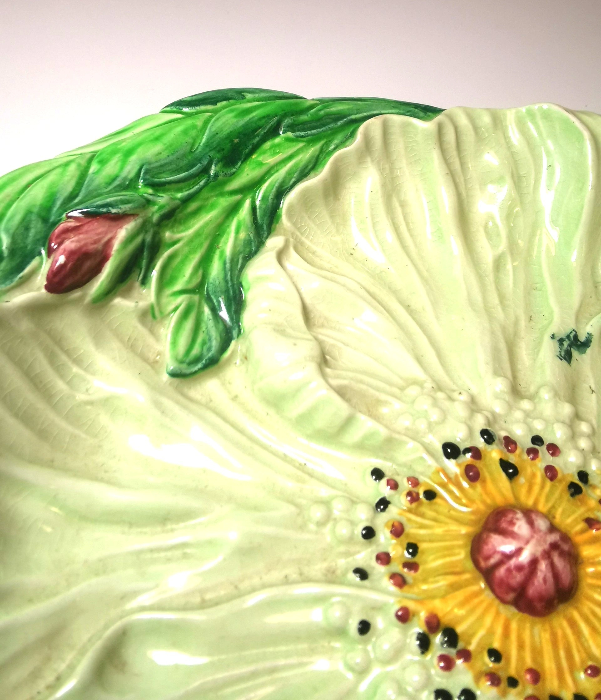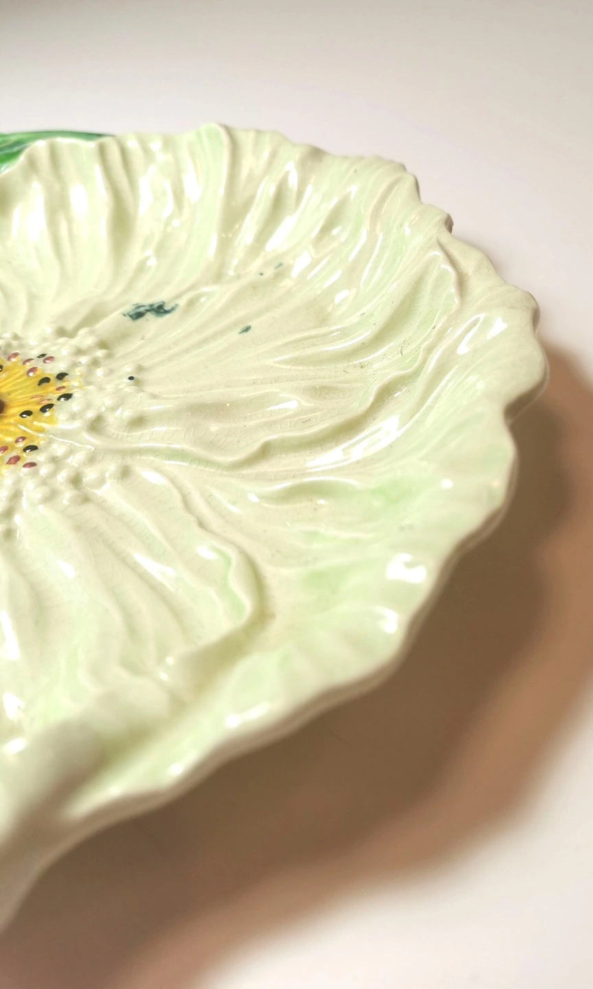 This vintage Carlton Ware yellow poppy/buttercup flower hand painted candy dish originates from England in the 1930s. Made of ceramic with a glossy finish, this round dish features a beautiful floral pattern and is decorated in a vibrant yellow color. This piece showcases the detailed craftsmanship and production techniques of the time period, making it a unique and charming addition to any collection or decor. Dimensions: Diameter 8.75 inches, Height 1 inch Condition: Good vintage conditioin light wear commensurate with age please reference photos as part of the description.
