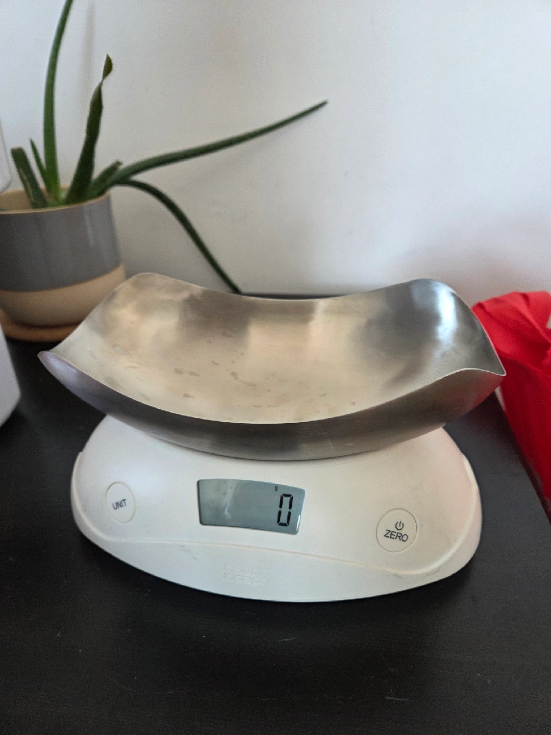 Joseph Joseph digital kitchen scale with a stainless steel bowl. It's in great condition. The bowl is perfect for measuring ingredients, and the scale is accurate, easy to use, and has different units for measuring. Batteries included.