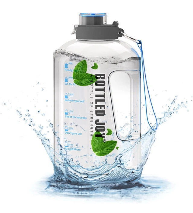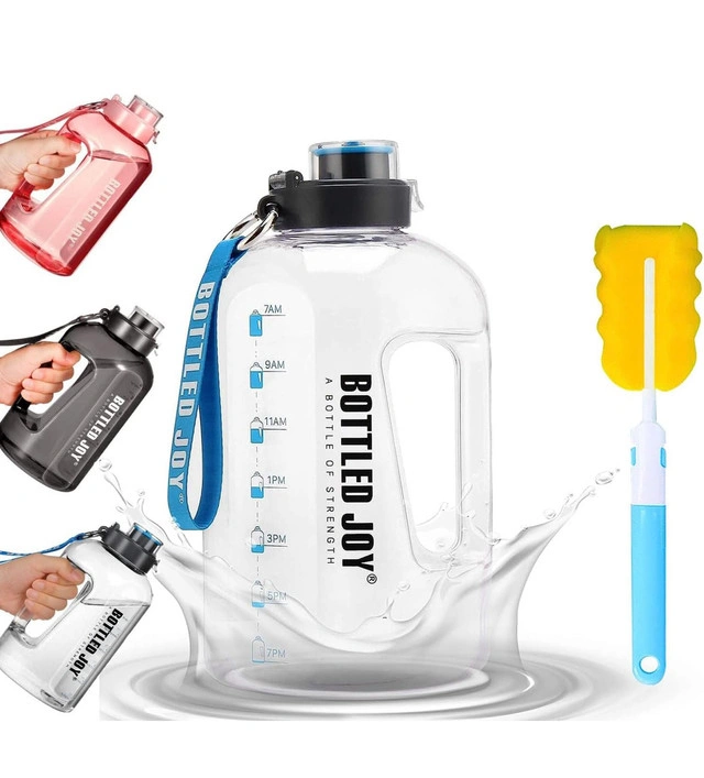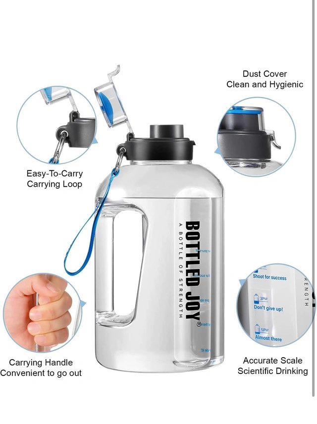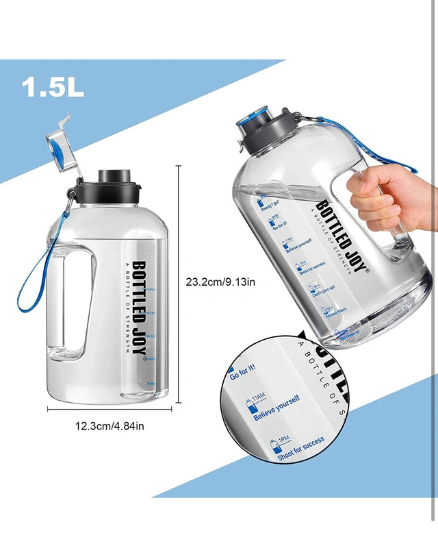 Selling a new in box Large Water Bottle with Time Marker, 52oz Clear Leakproof BPA Free Sports Water Bottle for Fitness Outdoor, Cycling, Camping for Men Women, For Bottled Joy Sports Jug. I have 2 remaining in stock.
