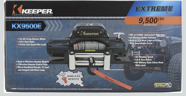 Selling a new in box Keeper Extreme Series KX9500E 12V 100FT cable winch. For Sale By: Owner