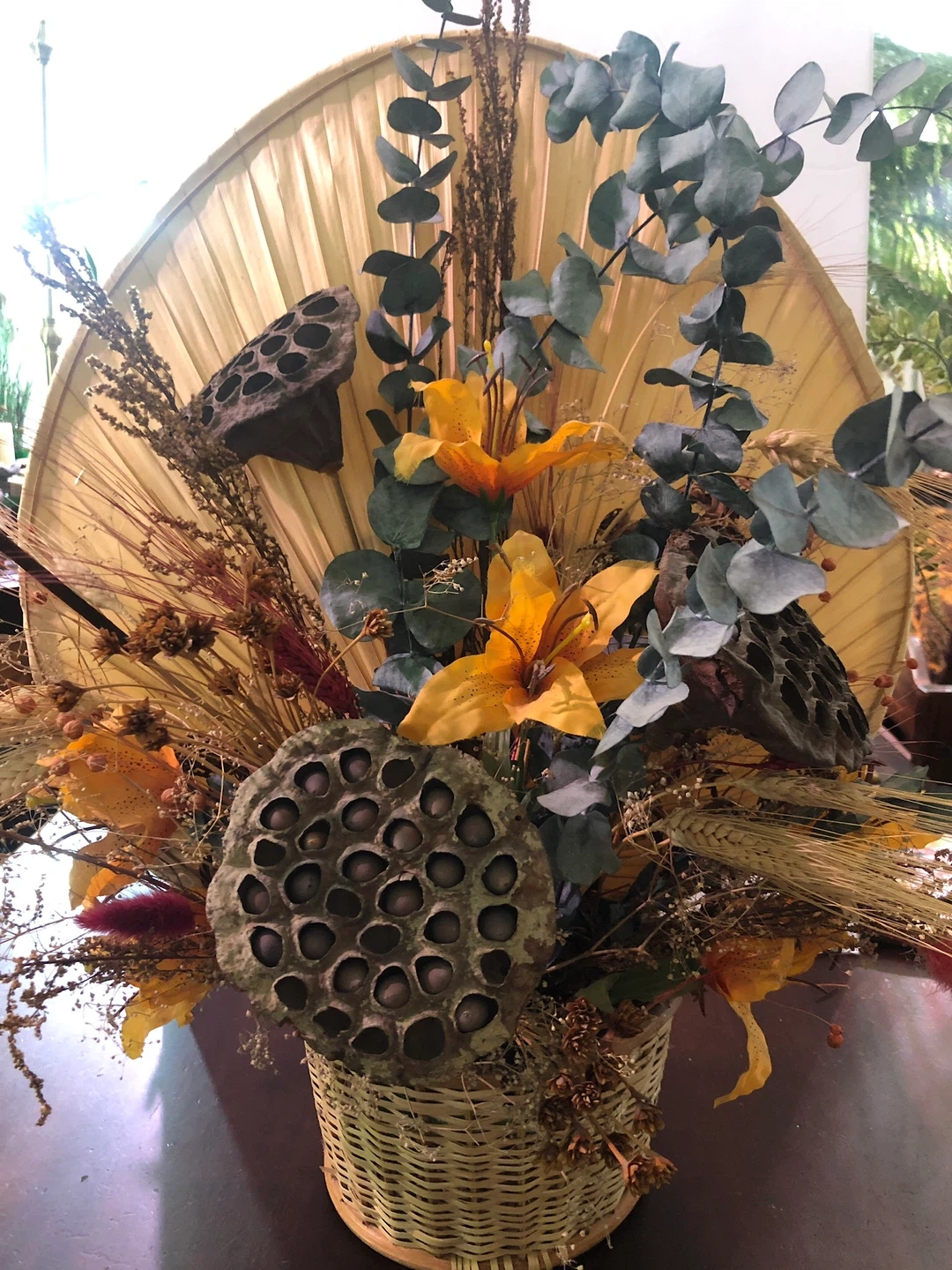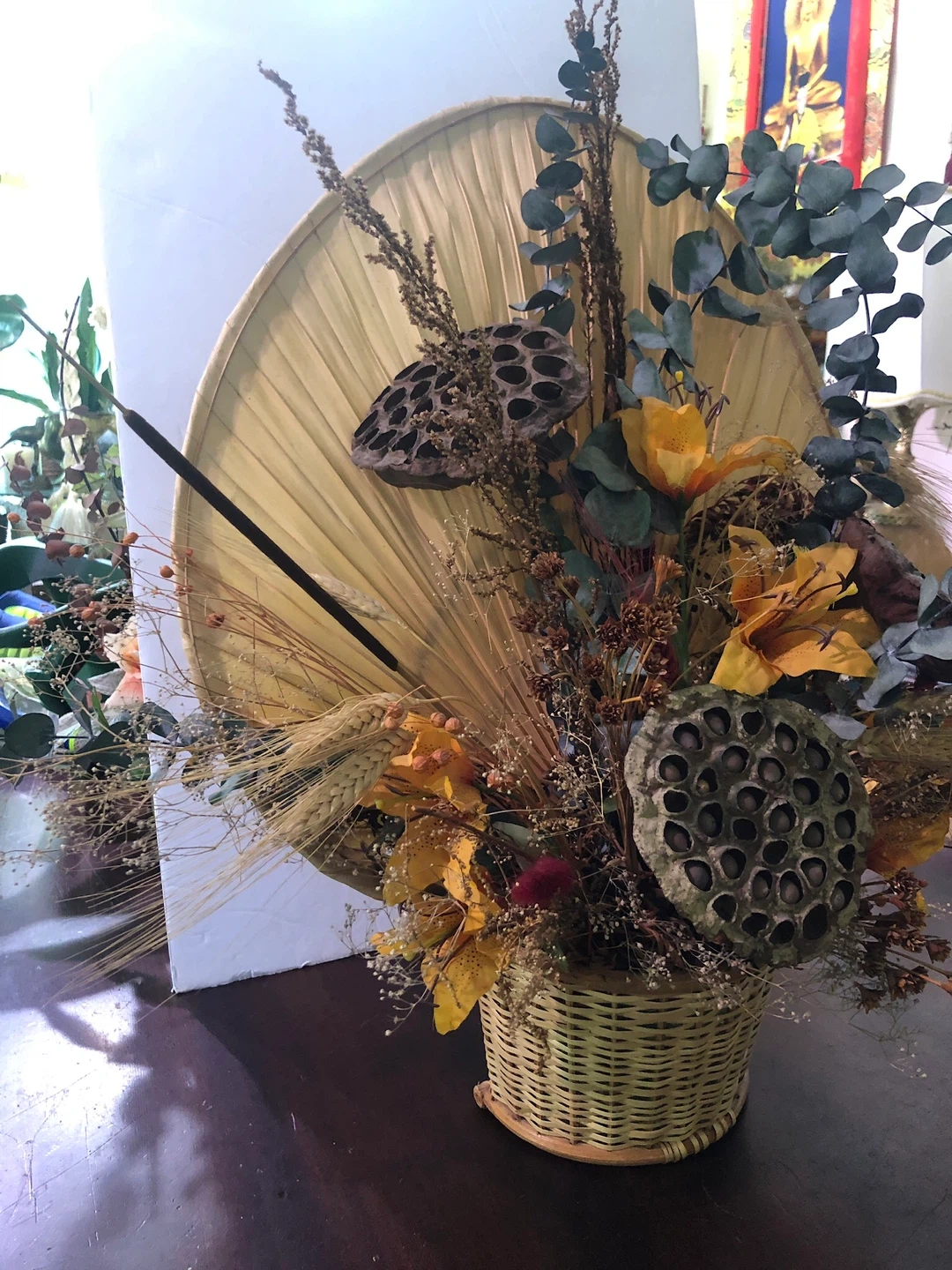 Vintage Dried Flower Arrangement. Good condition 18” wide x 23 ” tall. $20 Cash or etransfer Coliseum area Shipping extra Check out my other ads