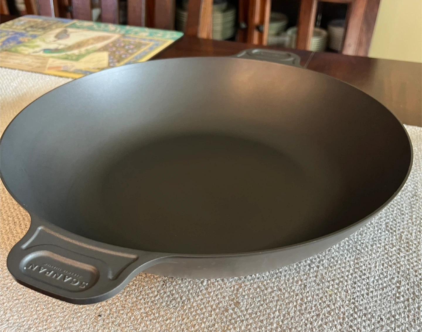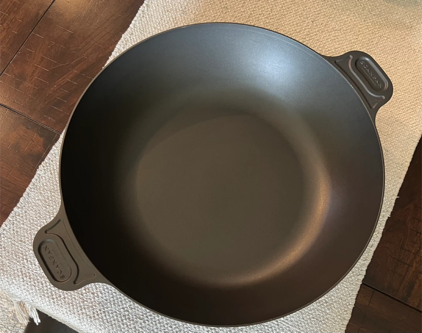 Perfect for paella, stir fry etc… Oven safe up to 260ºC/500ºF Durable and robust ceramic titanium nonstick surface that ensures even heating and effortless cleaning Suitable for any cooking surfaces and all kinds of utensils including metal Designed and manufactured in Denmark Mint like new condition 14.5” diameter 18” (from handle to handle) 3.25” tall Asking $45 Interested? Message me and please check my other listings…
