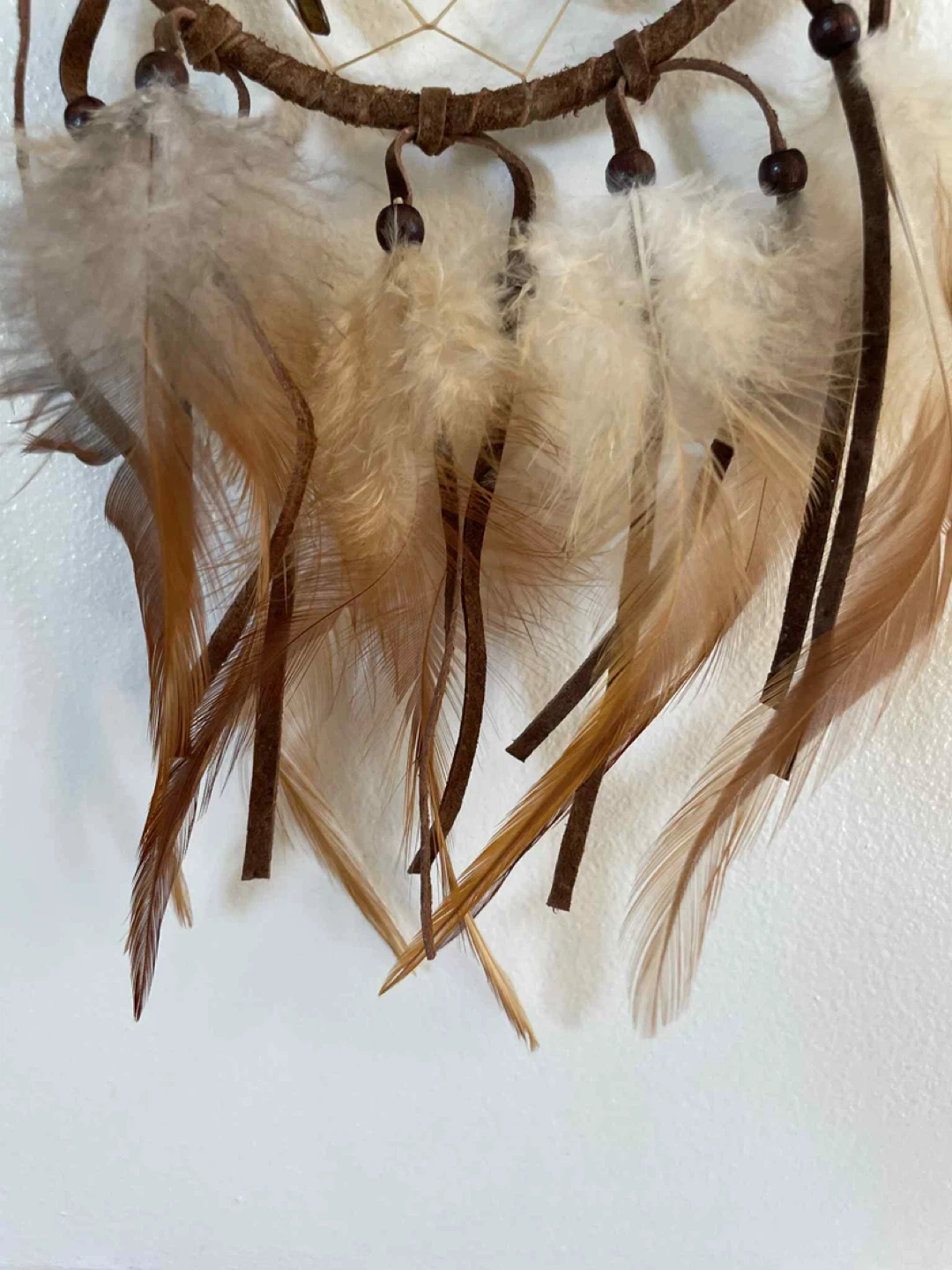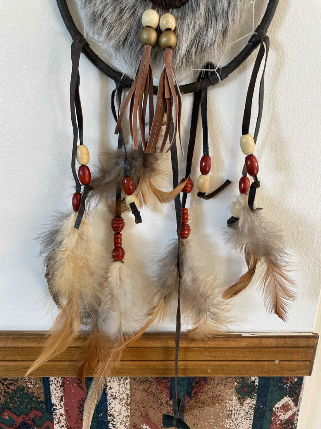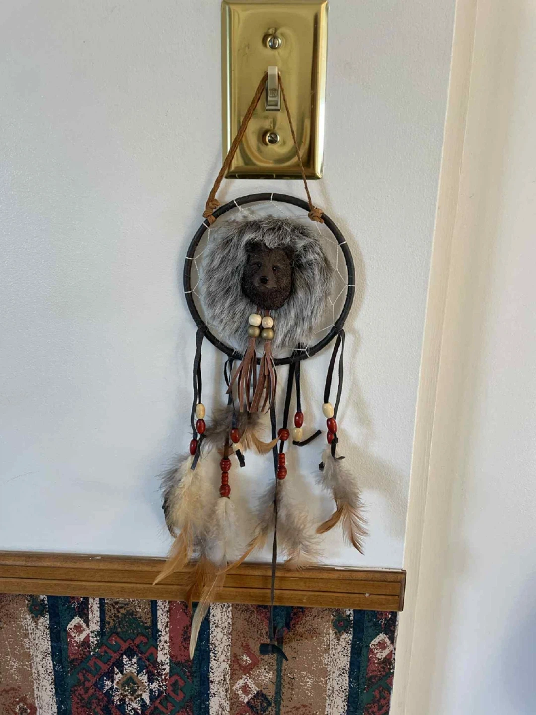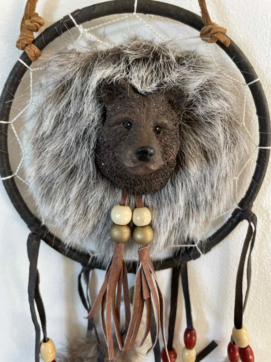 Bear Dreamcatcher Dreamcatcher with bears head and fur in the hoop and beads and feathers hanging down In good condition $15