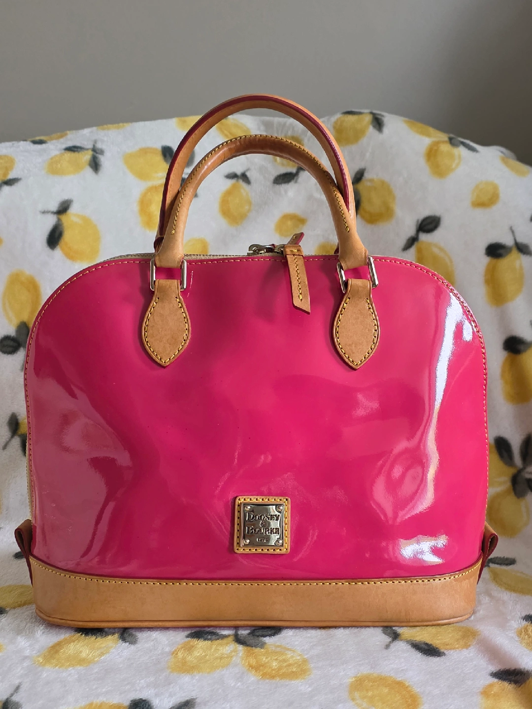 ⭕️ Authentic Dooney and Bourke ⭕️ Patent leather ⭕️ Preloved but still nice condition (see photos for imperfections) ⭕️ Hot pink colour ⭕️ Spacious inside ⭕️ Has a key holder hook inside ⭕️ No tears, marks, or peelings on the handles ⭕️ This is a handbag, no crossbody strap 📍 Meet up in Kingsway Mall or at Purolator store in 11220 104 Ave. NW Edmonton. Thanks for dropping by! 👍