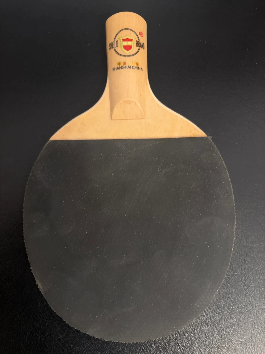 Selling a table tennis paddle from Shield Brand. It features a classic design and is ready for your next match! The paddle has a measurement of 15.25cm on the handle. Pick up only. Thank you.