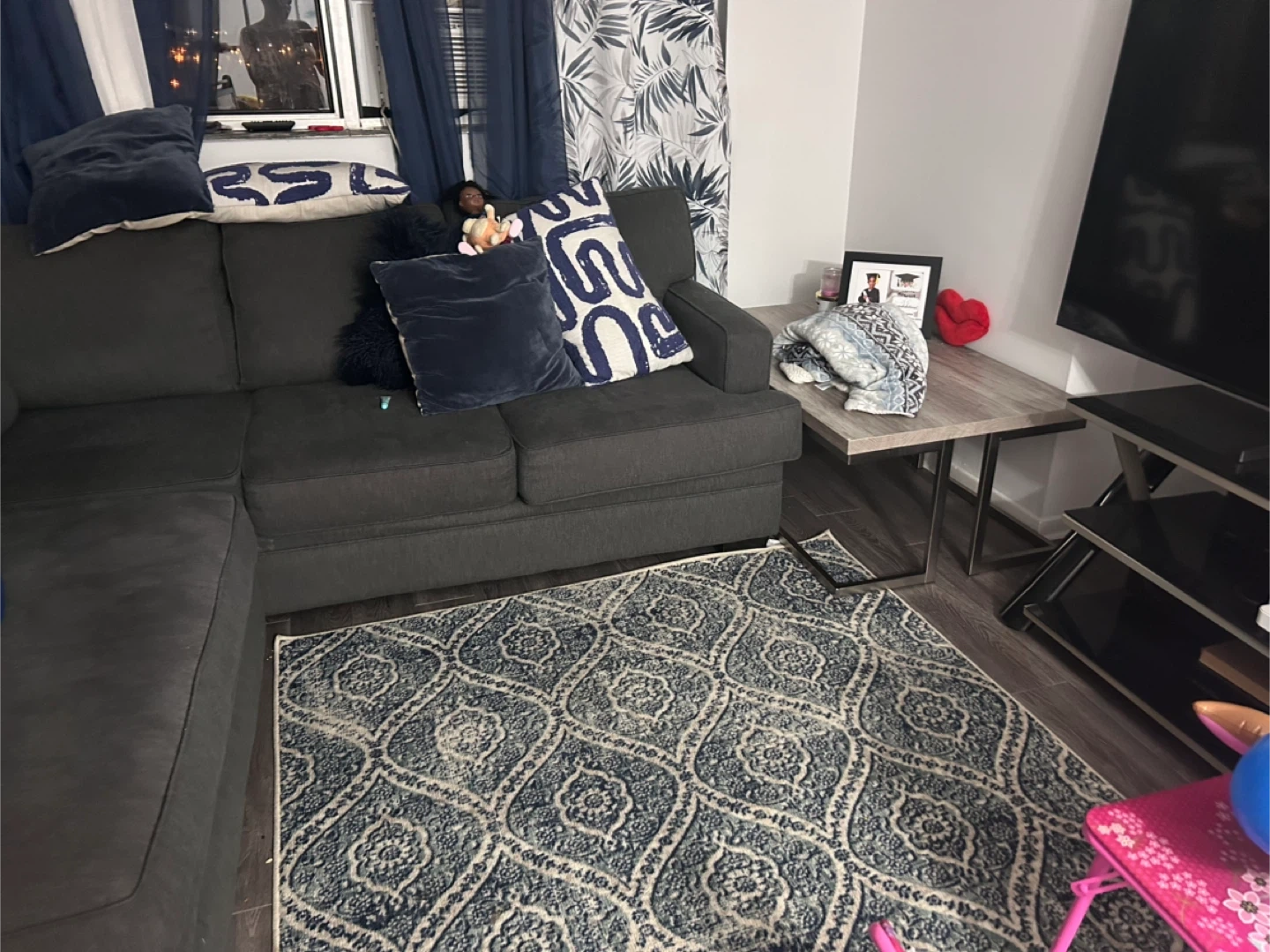 Selling a comfortable grey sectional sofa. It's in good condition and would be a great addition to any living room. It features a chaise lounge on one side for extra comfort and relaxation. Perfect for lounging and movie nights!