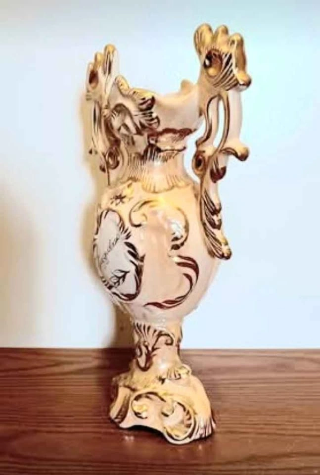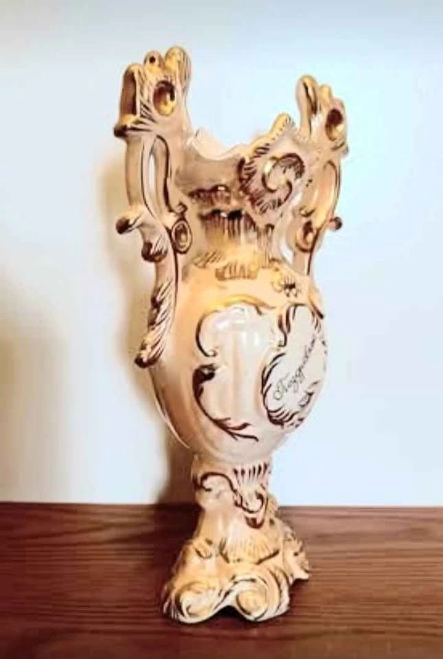 Vintage, Signed Artist & Stamped Golden Ceramic Table Vase Height : 30 cm - 12" Decorative, Household . Mint Condition , no chips or cracks Please check out my other rare items!