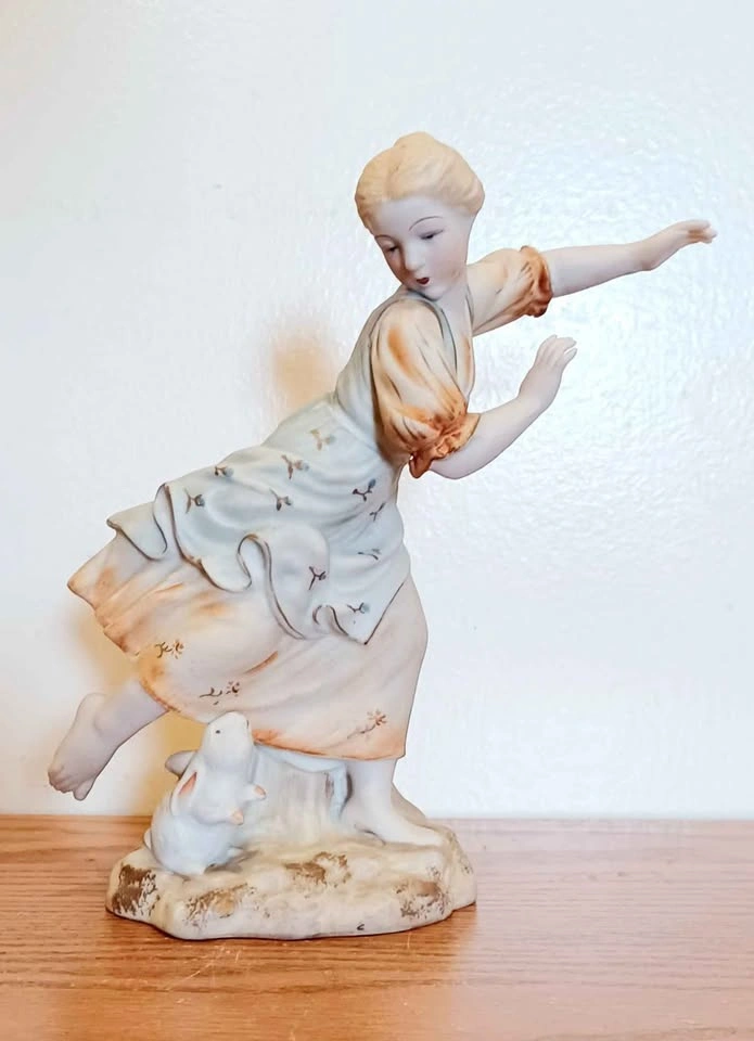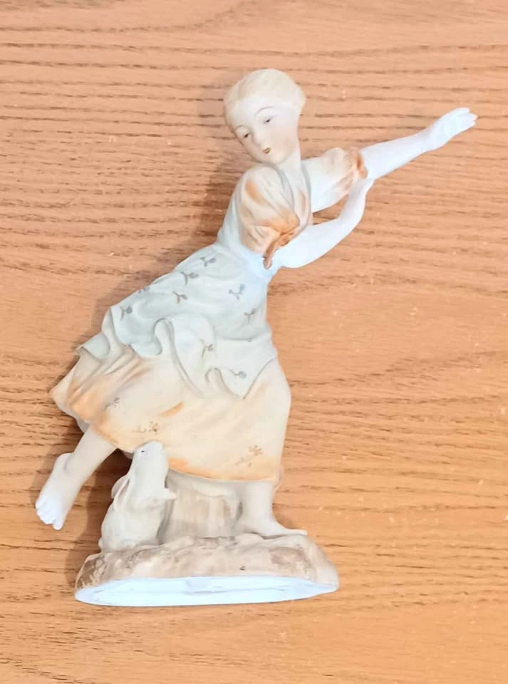 Vintage, Very Rare, Hand Painted Lady with Rabbit, Staffordshire Stamped, Statue Decorative Sculpture, Household Excellent Condition,no chips or cracks Please check out my rare items!