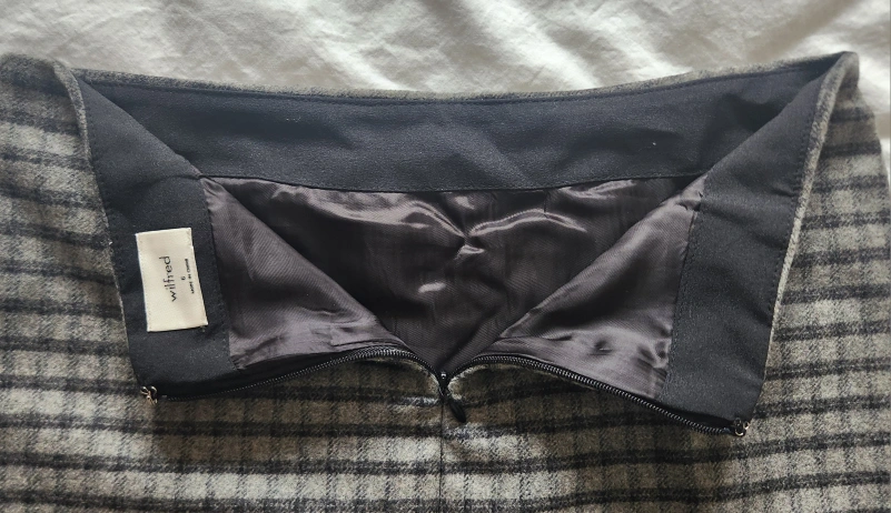 Selling a Wilfred mini skirt in size 6. It's in great condition and features a classic plaid pattern. Perfect for adding a touch of sophistication to any outfit!
