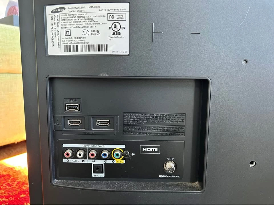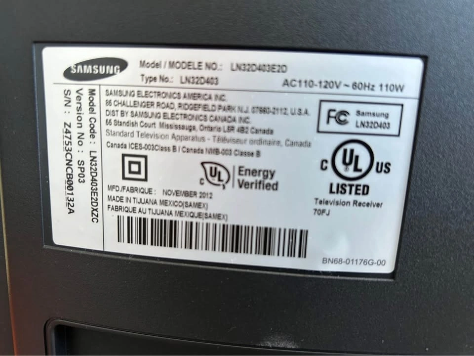 Samsung 32” tv. Remote comes with it and power cable. Selling because my parents gave me their newer tv because they bought a new tv.