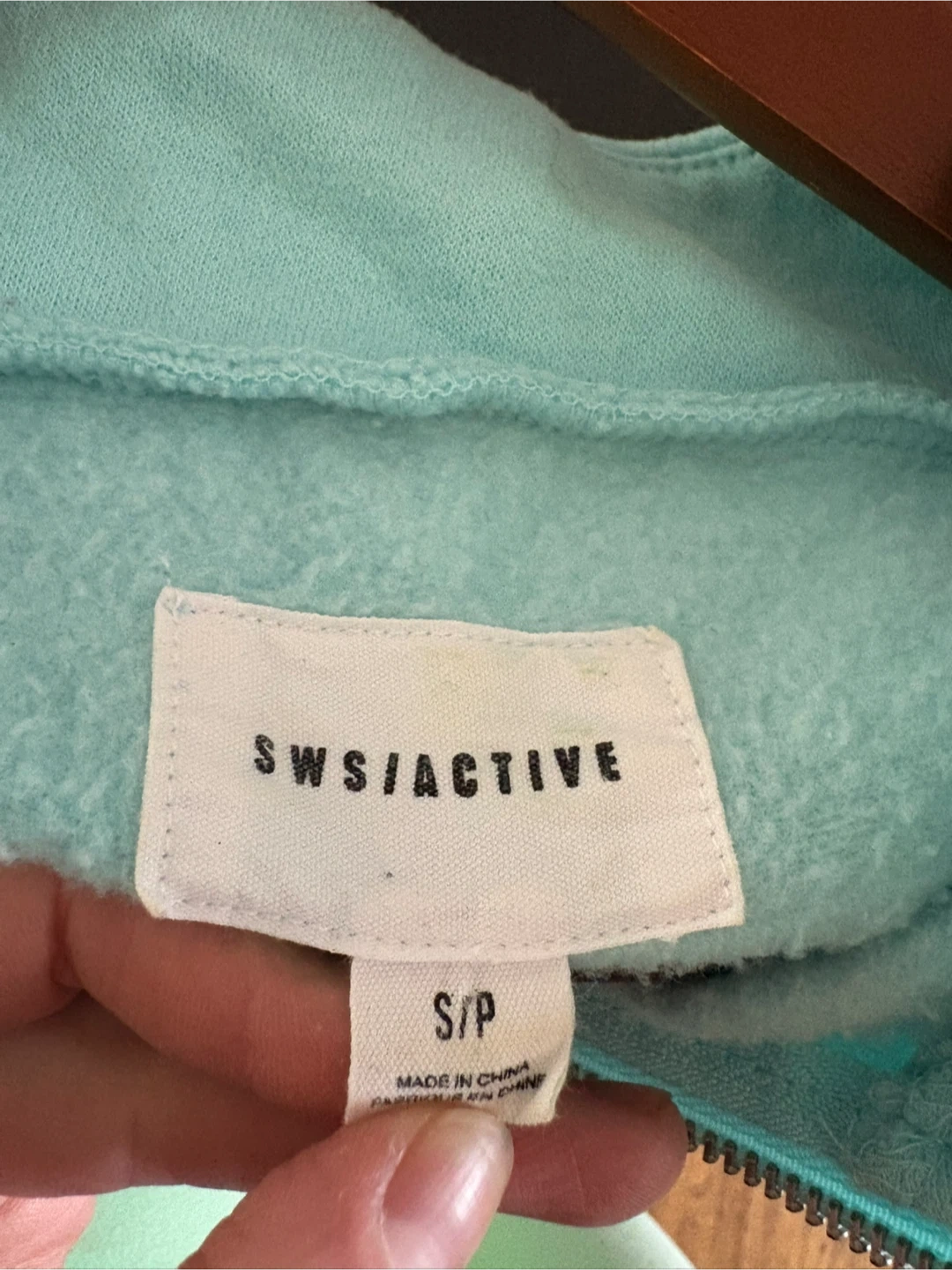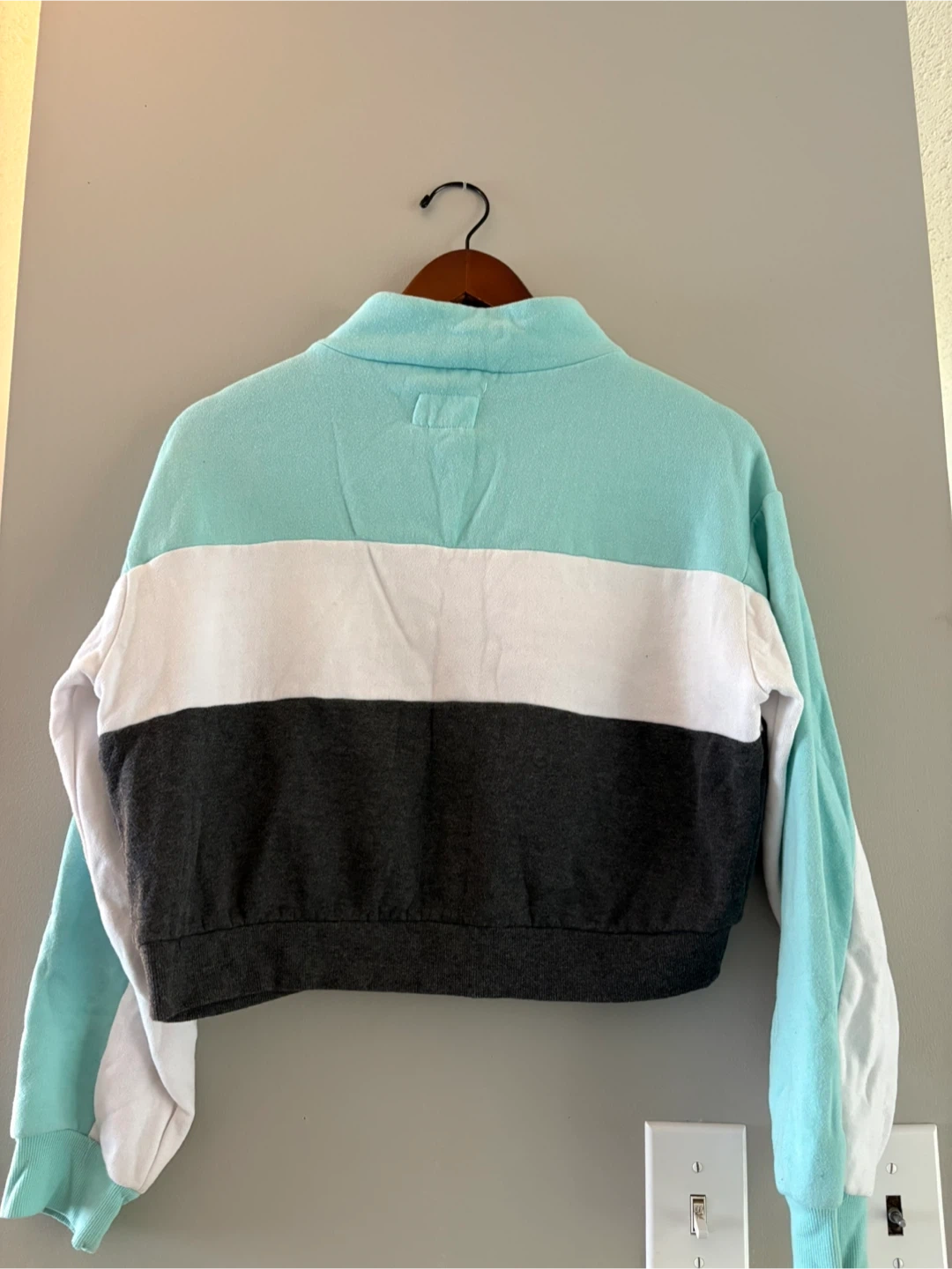 Streetwear Society/ ACTIVE crop sweater, size S Colour block pattern (turquoise, white, grey). Quarter zip. In good condition.