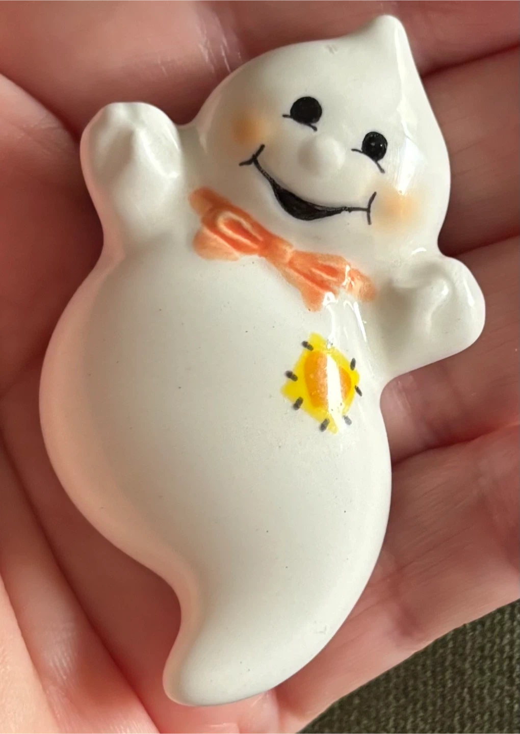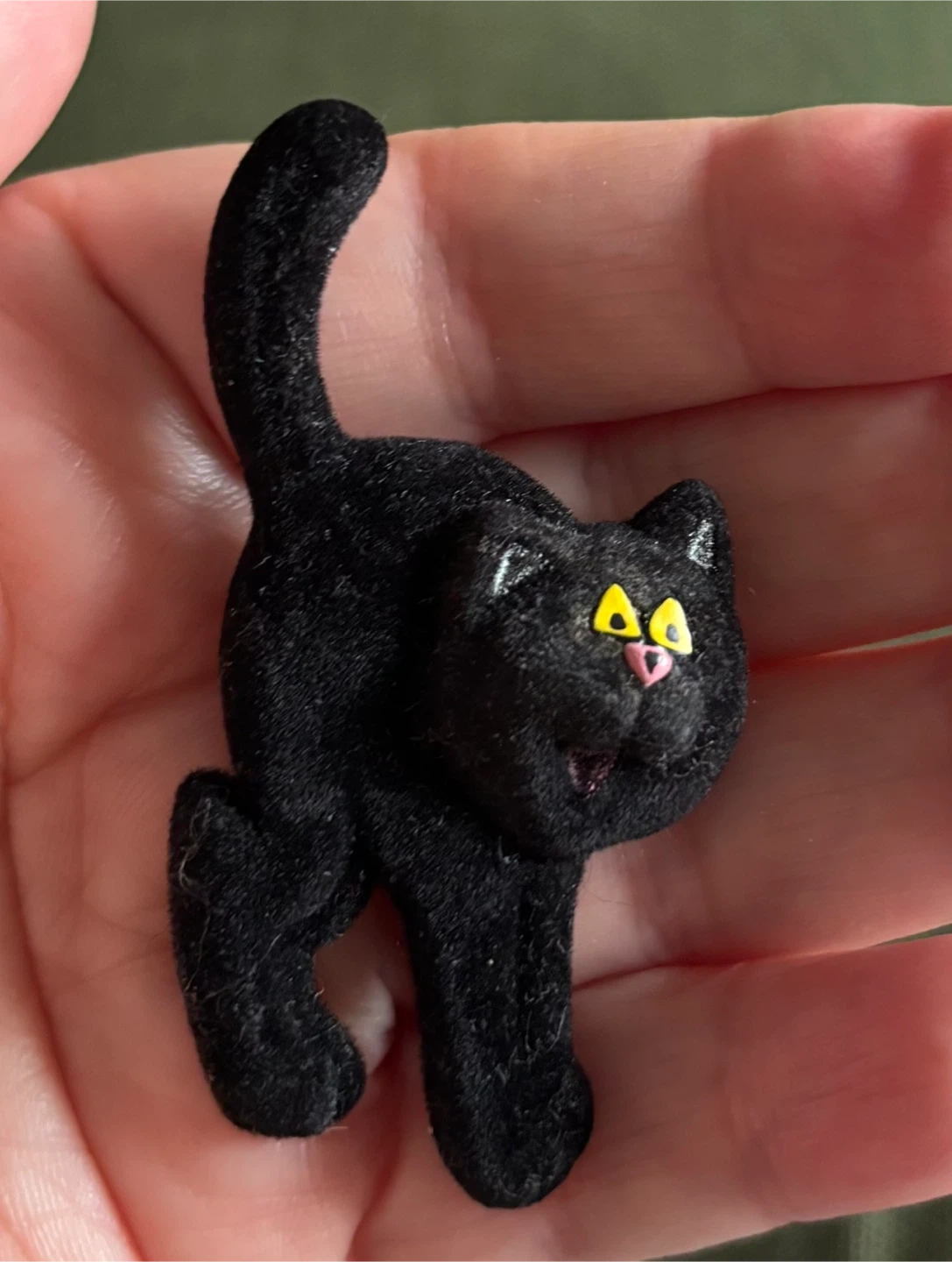 Cute vintage Halloween brooches! There's a ghost and a black cat, both marked HMK CDS on the back. Perfect for adding a spooky touch to your outfit! Info in photo. Both as is, as they are vintage $5.00 each, exact cash only