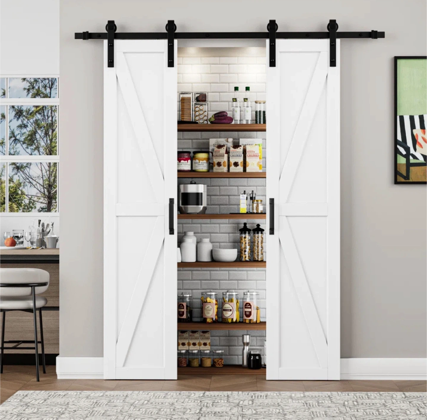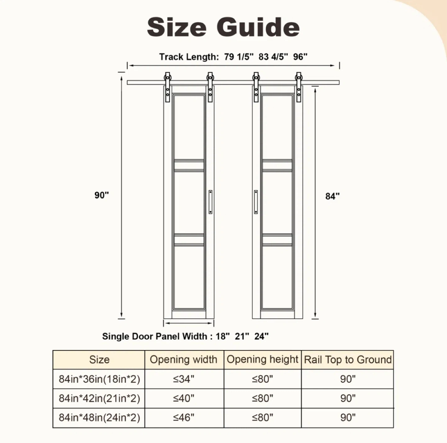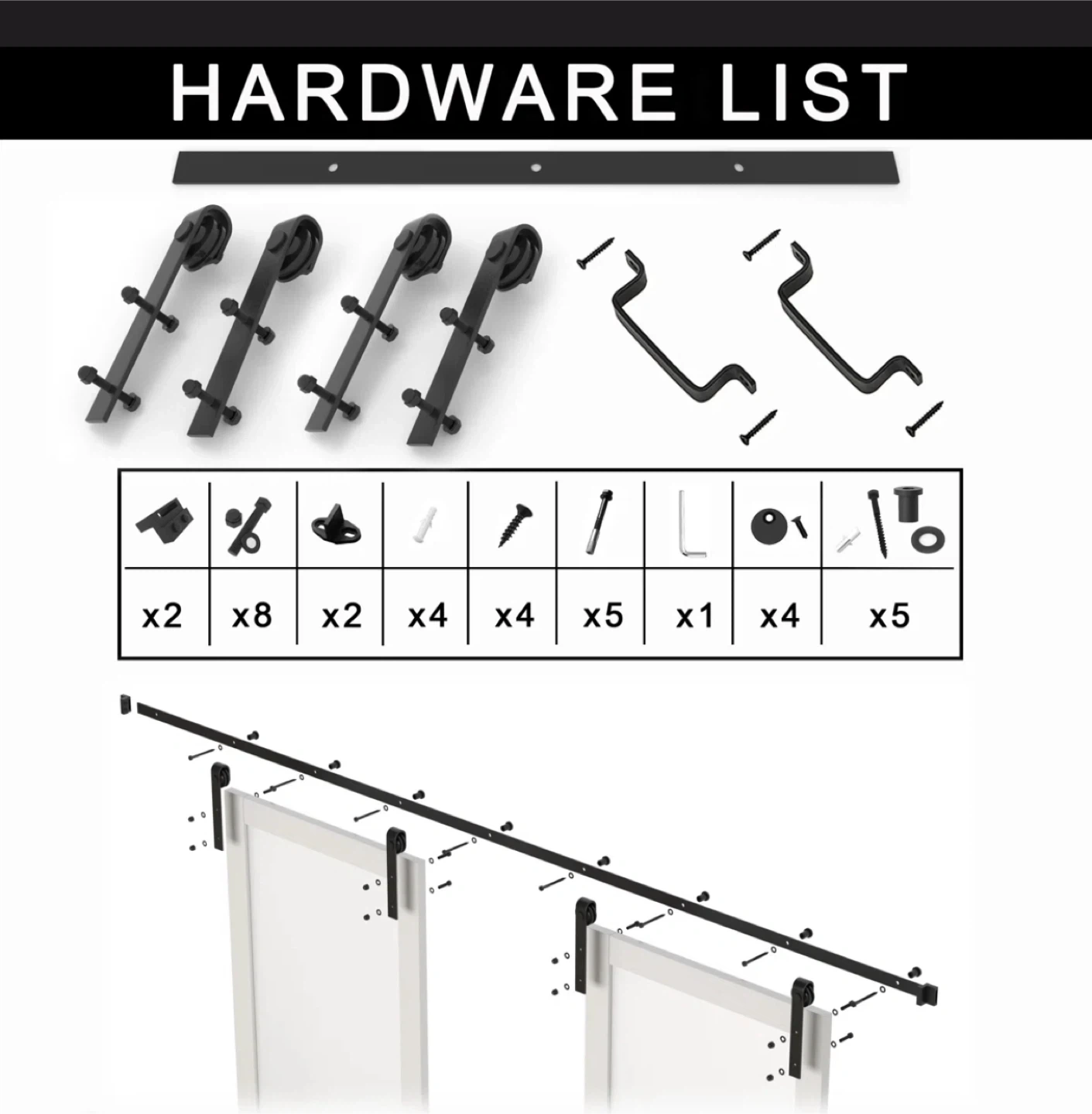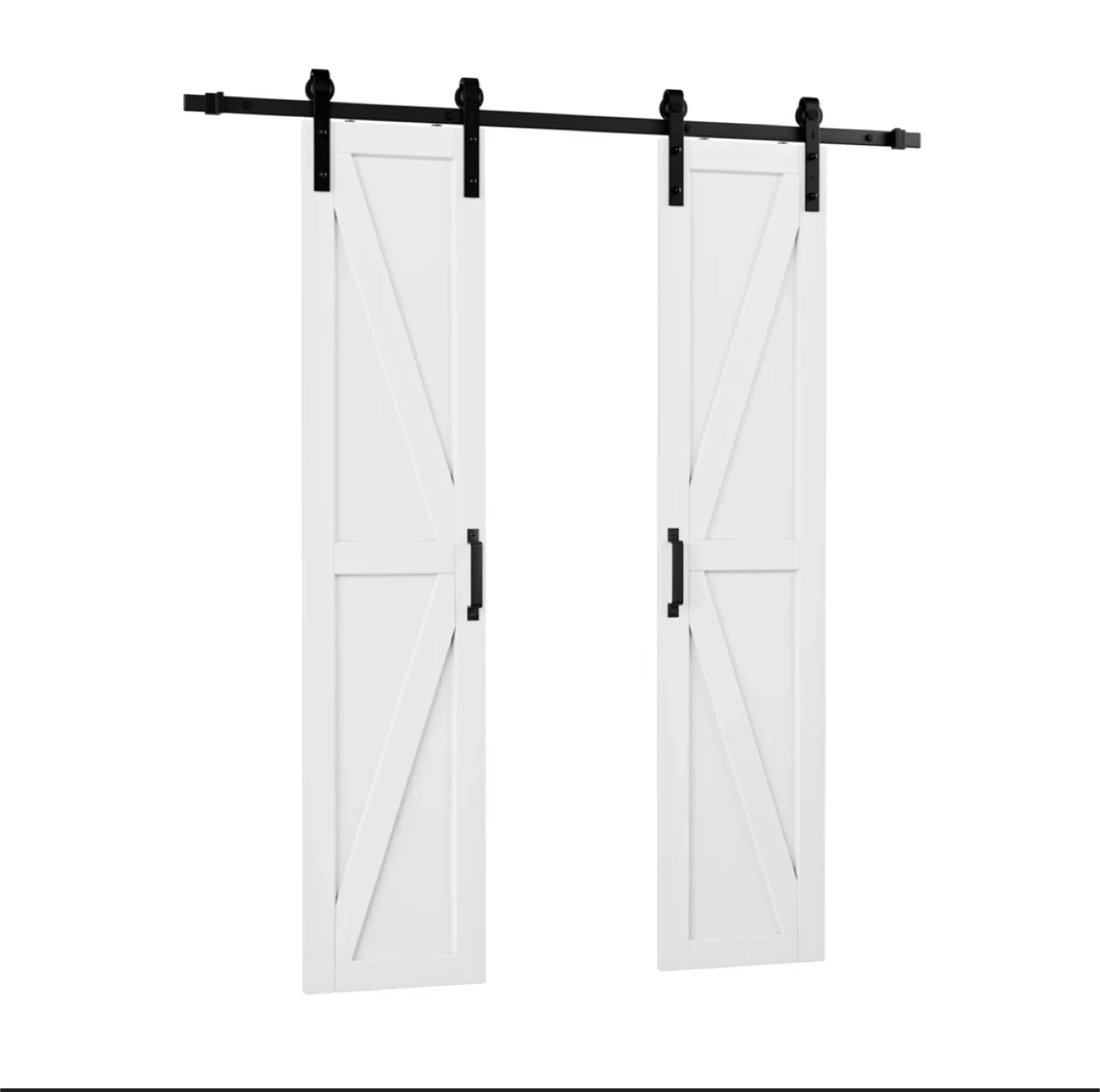 Looking to add a rustic touch to your home? This Win Stellar barn door kit could be just the thing! It includes the installation hardware, making it easier to set up. The door is white and measures 84" H x 42" W x 1.38" D. Hardware is missing.