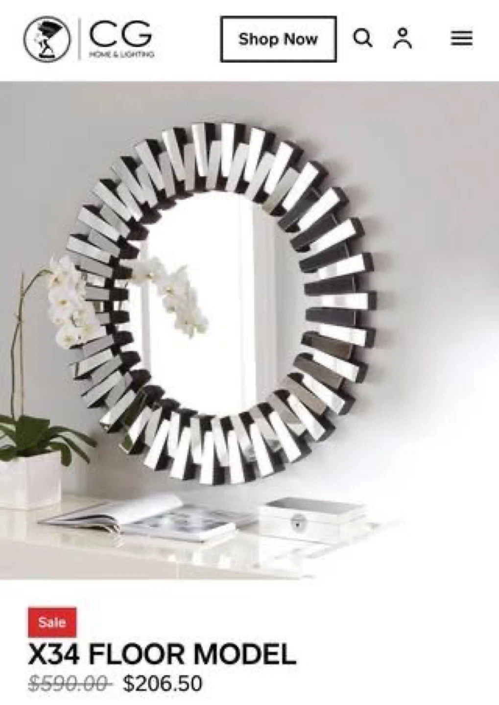 Selling a brand new CG Home & Lighting X34 round mirror, still in its original packaging! This mirror is a floor model and features a unique design. It was originally priced at $590, but is now available at a great price. Perfect for adding a stylish touch to any room!