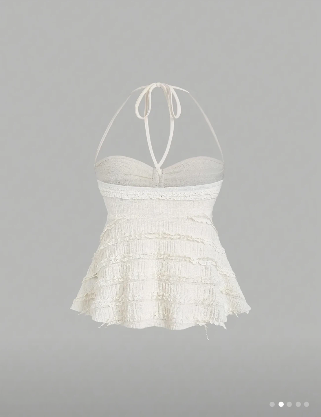 Here's a cute white halter top! Brand mew. Purchased online but it’s too big for me so don’t even try to wear it. Feel free to message me if you’re interested.