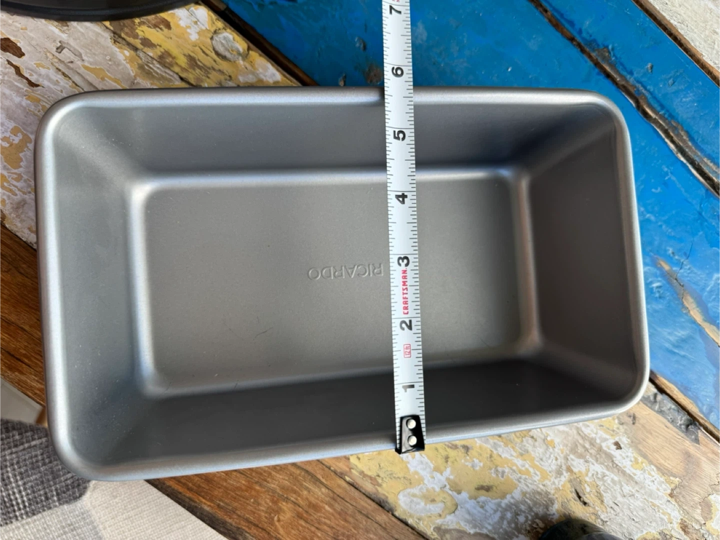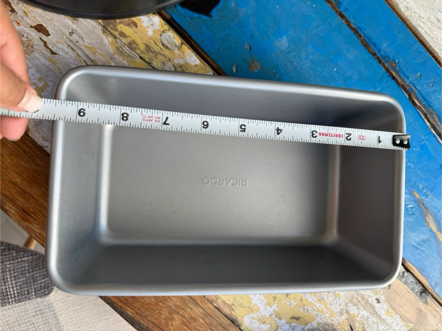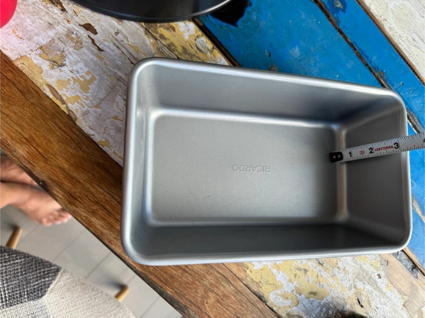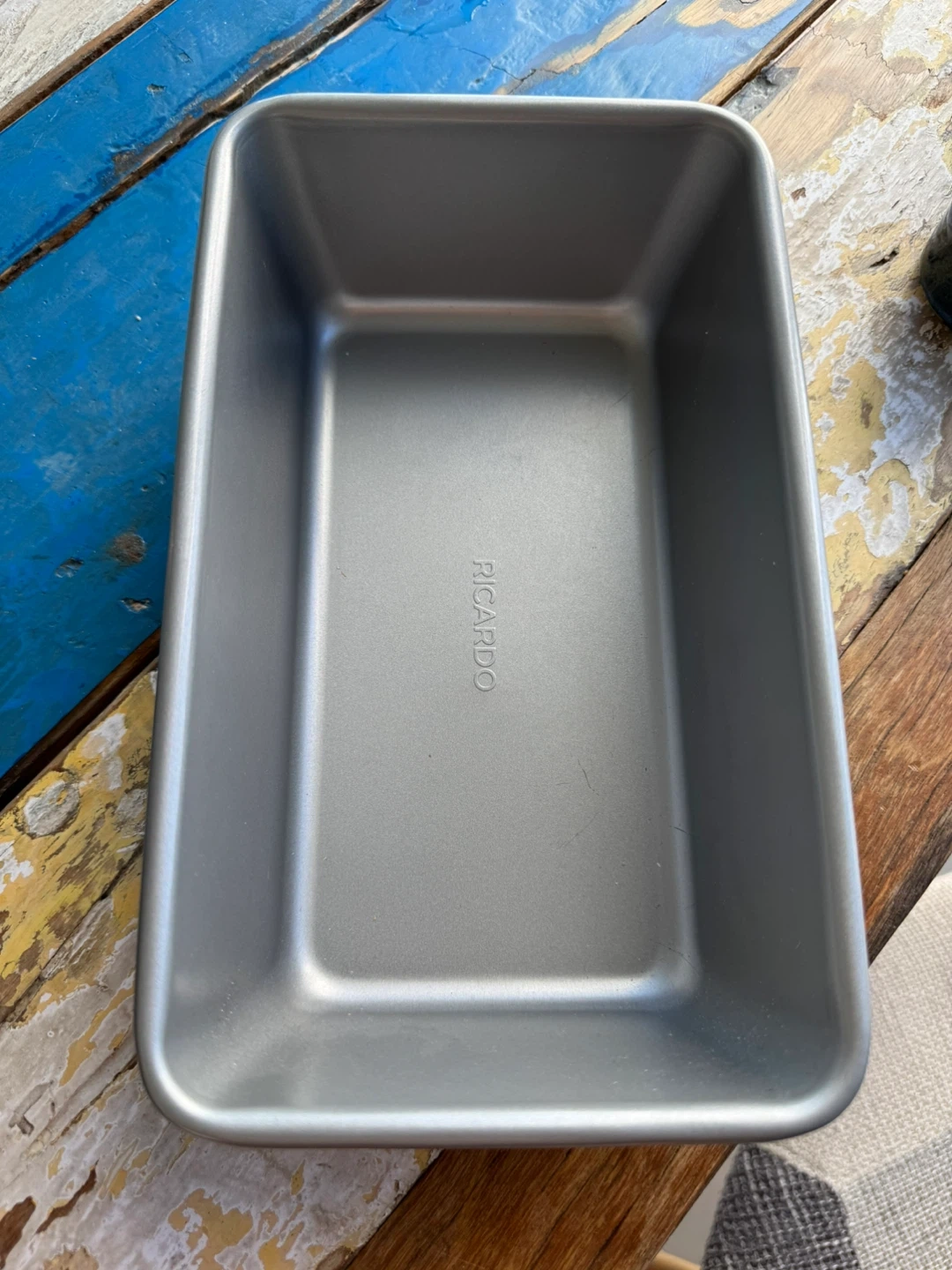 Selling a Ricardo loaf pan in great condition! It measures approximately 9 inches long and 5 inches wide, perfect for baking bread or cakes. It's a sturdy pan that will last for years to come
