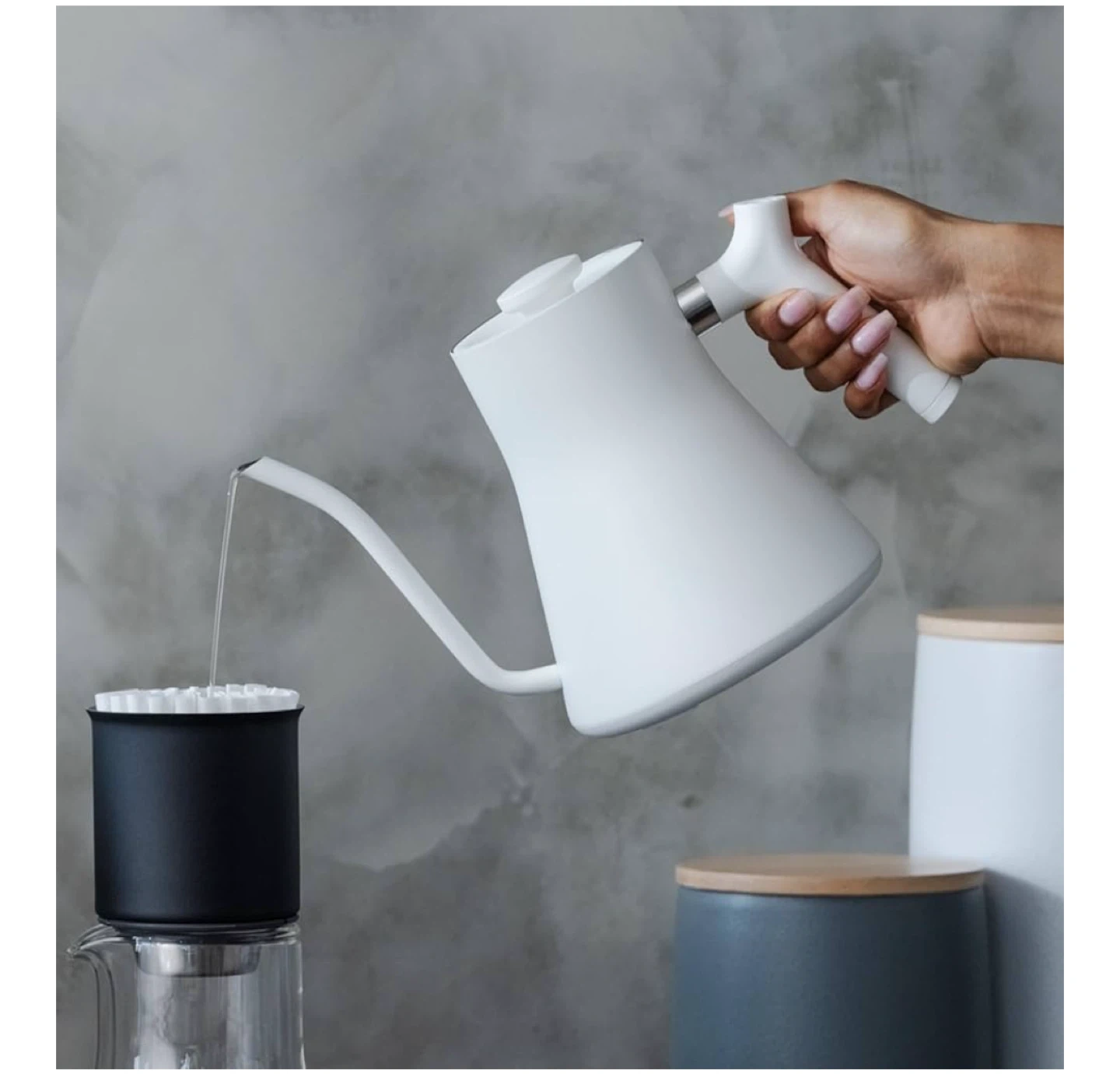 I'm selling a Fellow Stagg Pour-Over Kettle. The kettle features a precision pour spout, a counterbalanced handle, and an ergonomic grip. It's made with 304 18/8 stainless steel. Great for your morning coffee!