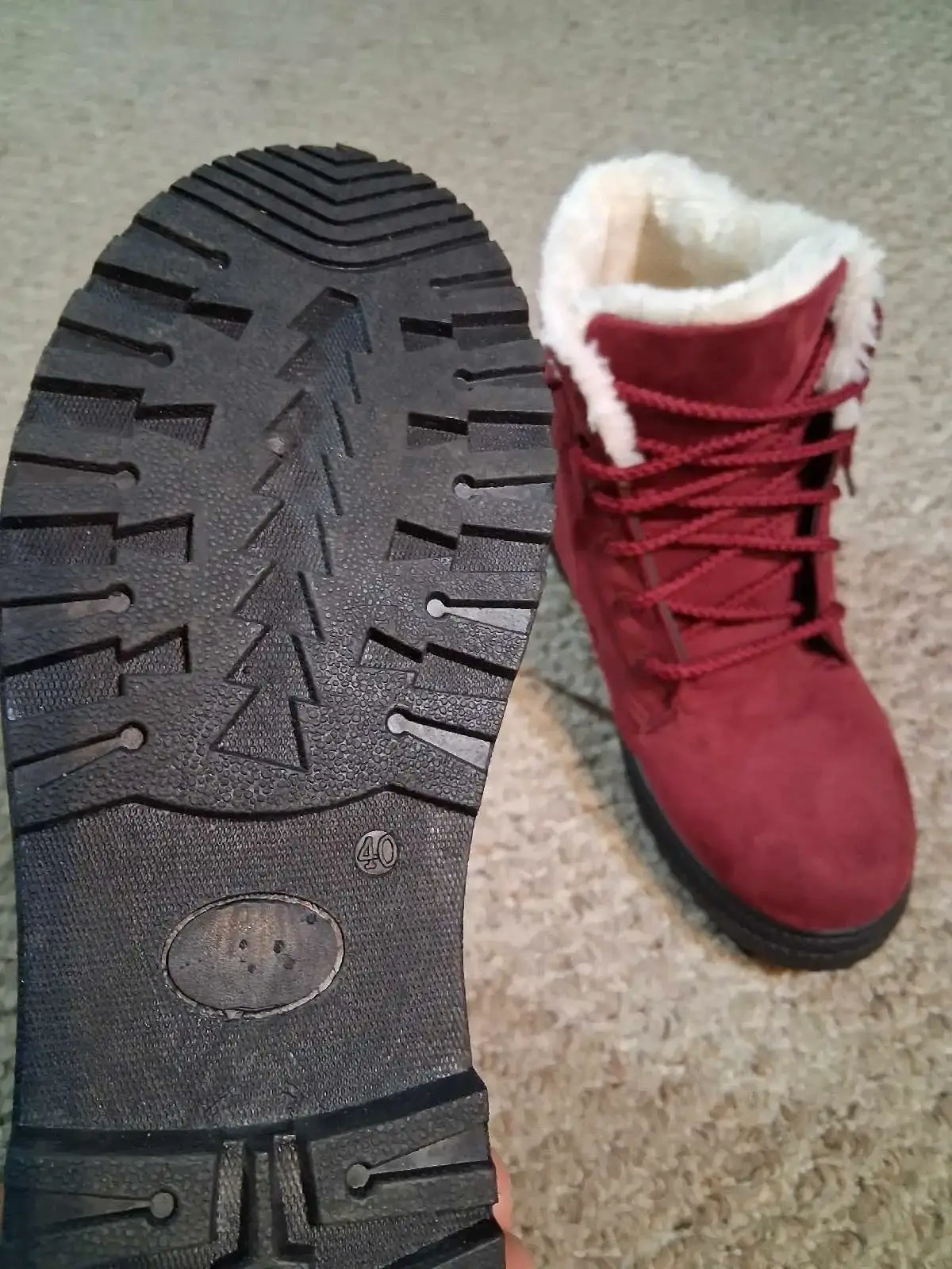 Step out in style with these eye-catching, burgundy-red boots, perfect for adding a pop of colour to your autumn wardrobe! These cozy, ankle-high boots feature plush, faux-fur lining to keep your feet warm and snug during those chilly days. Don't miss out on the chance to add these stylish and comfortable boots to your collection!