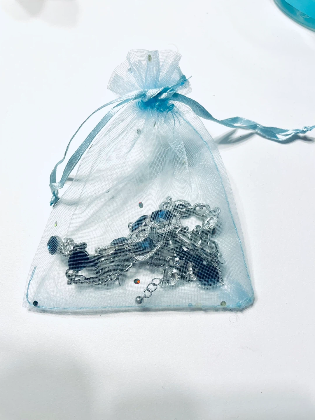 Elegant necklace and earring set. Features blue oval Crystals and silver-chain. Perfect for formal events like a wedding. Wore only once.
