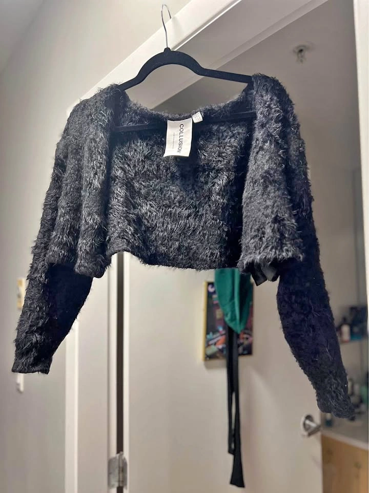 Faux leather wet look black shirt biker button-up L y2k