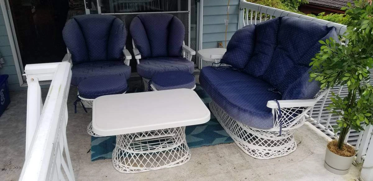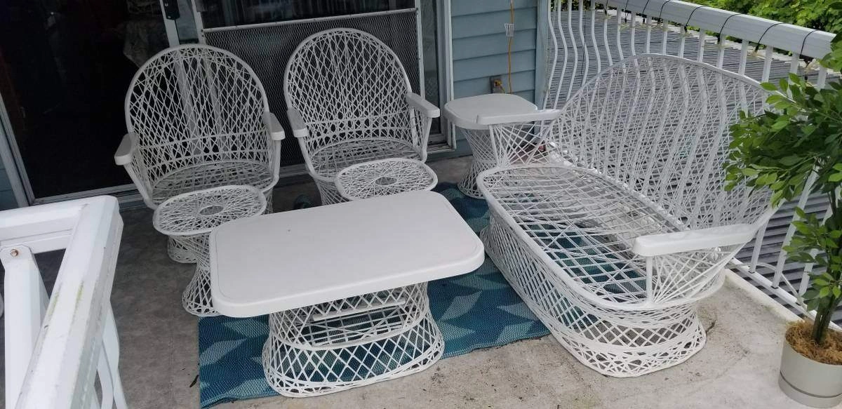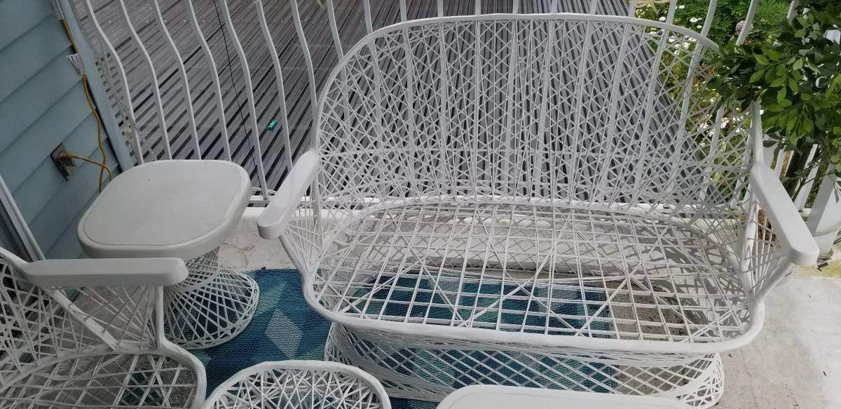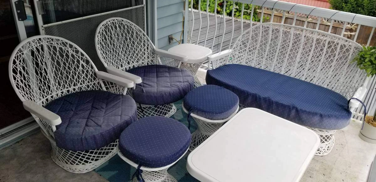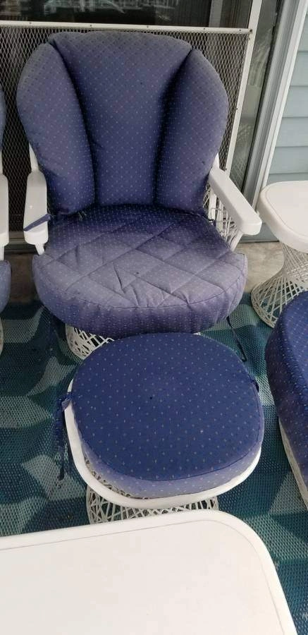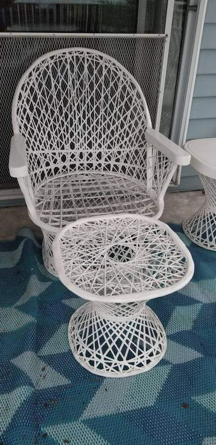RARE SHOW HOME 8pc Mid-Century Spun Fiberglass Patio Set – Woodard Style E-Transfers Accepted Pick Up Anytime A striking 8-piece mid-century modern patio set in spun fiberglass and metal, directly inspired by the iconic designs of Russell Woodard. This rare and complete set was originally curated as show home furniture, ensuring excellent condition and timeless presentation. Details: Full 8-piece set, including the 2nd end table (not shown in photos) Sculptural spun fiberglass seating with sturdy metal frames Original reversible cushions with ties Curated for a high-end show home – light display use only Excellent vintage condition Local delivery available for $69 Why It’s Premium: Authentic Russell Woodard spun fiberglass sets often command $4,000–$7,000 CAD. This rare complete set, offered at $3,000 CAD, provides exceptional value for collectors, designers, or homeowners seeking a statement outdoor collection. mid century patio set, MCM furniture, spun fiberglass, Russell Woodard style, outdoor mid century, retro deck set, designer patio, luxury outdoor furniture, collector Price: $3,000 CAD