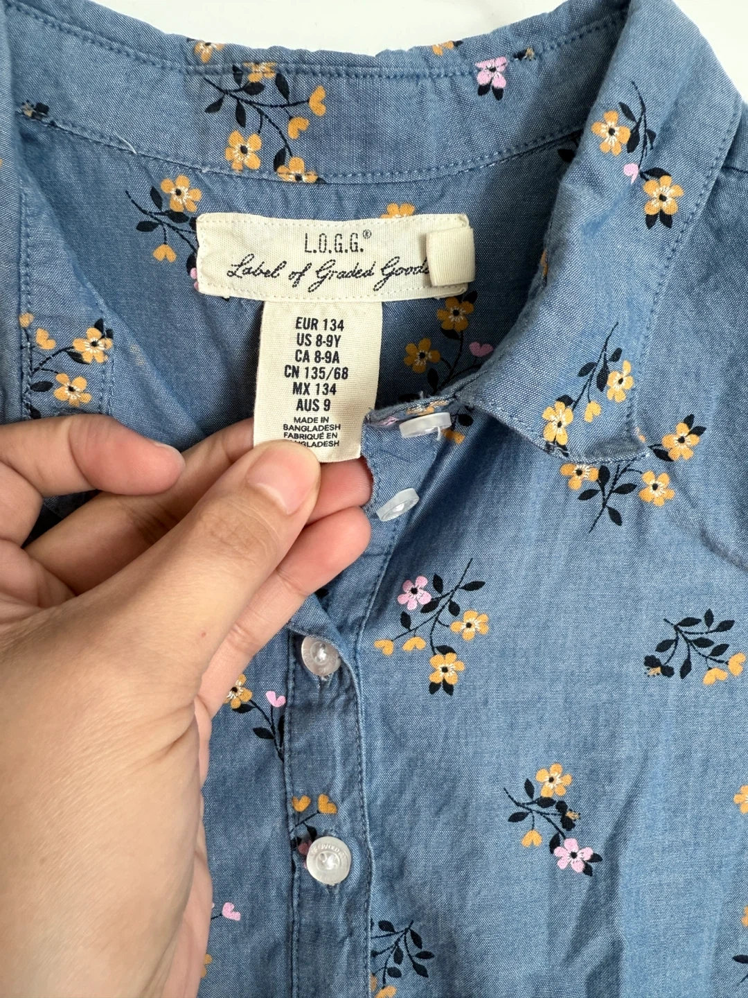 Cute H&M L.O.G.G. dress with a floral pattern! It's a size 8-9Y (EUR 134, US 8-9Y, CA 8-9A, CN 130/68, MX 134, AUS 9). Made in Bangladesh. Washed and tried only. My daughter didn't liked it.