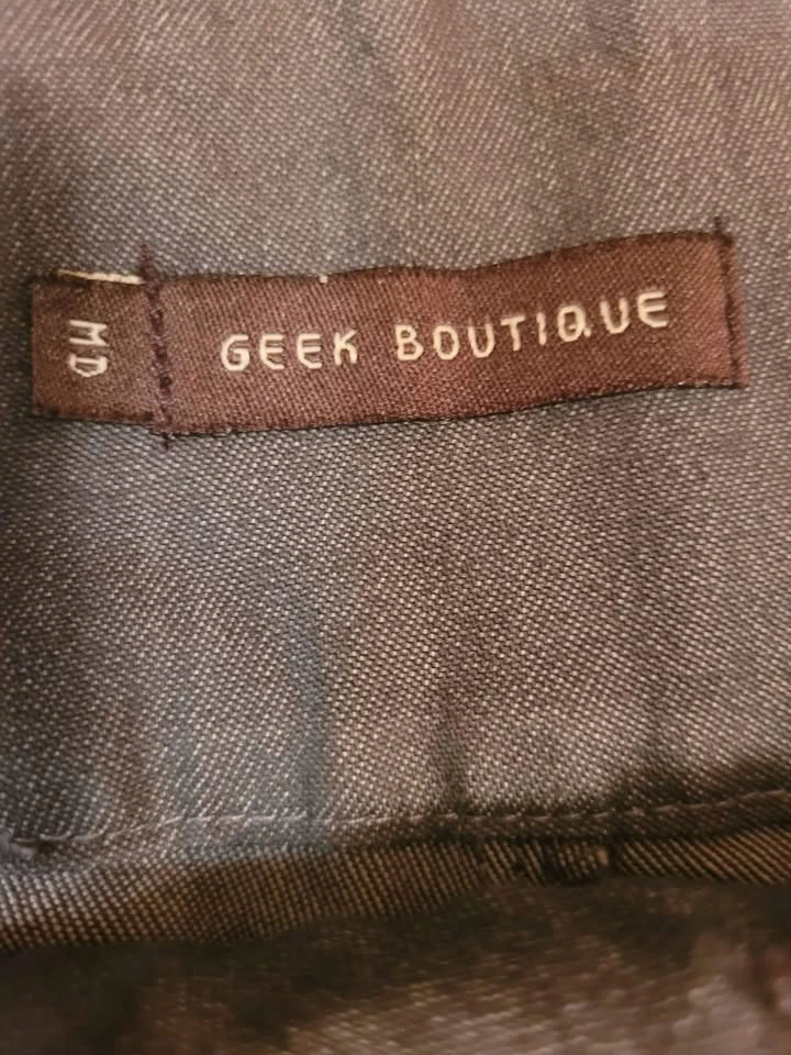 Really nice heavy-ish flare pants. Brand is 'Geek Squad' and the size is medium...I would say they fit 5/6 Maybe 7/8. Pick up Welland :) Please check out my other ads!