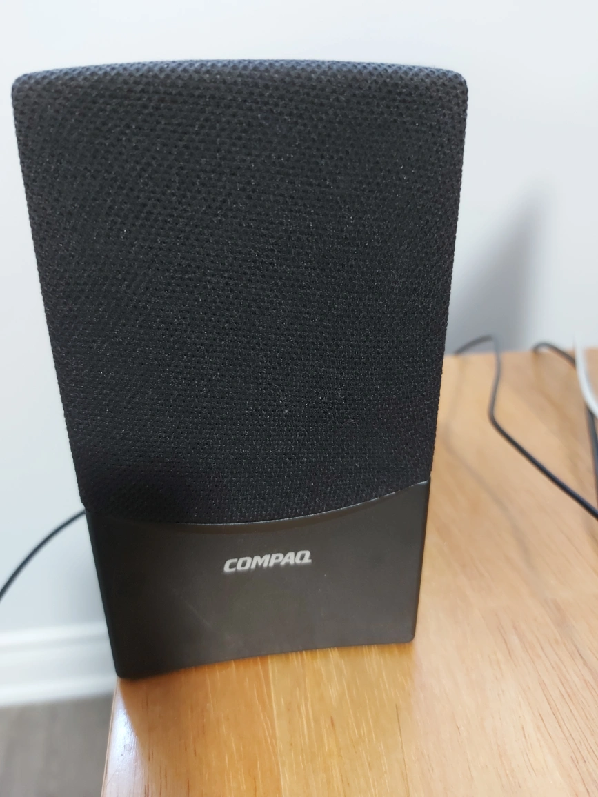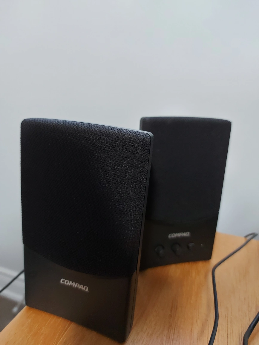 Selling a pair of Compaq speakers. They're black and in great condition! Perfect for a desktop setup or small space