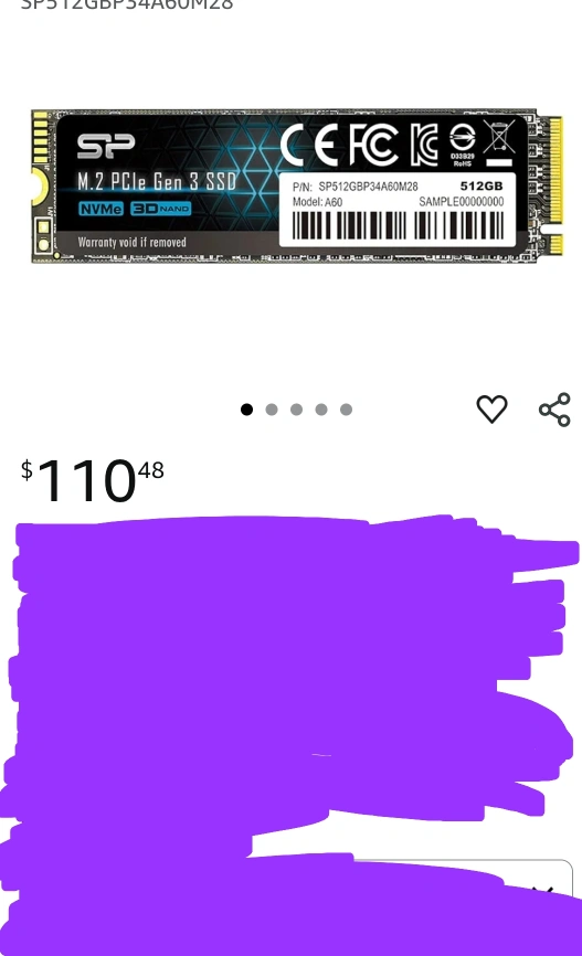 New never used Silicon Power A60 M.2 2280 512GB Max2200/1600 MB SP512GBP34A60M28 Top highlights Digital storage capacity512 GB Hard disk interfacePCIE x 4 Connectivity technologySATA BrandSilicon Power Special featureMaximum temperature 0 - 70 °C, RAID support, Safety algorithm: 256-bit AES, Warranty card Hard disk form factor2.5 Centimeters The mega box is a piece made of polypropylene Very robust material Keeps your items safe The maximum number of items to carry during your ride pick up Edmonton cash no transfers.