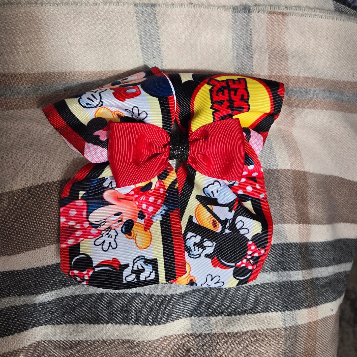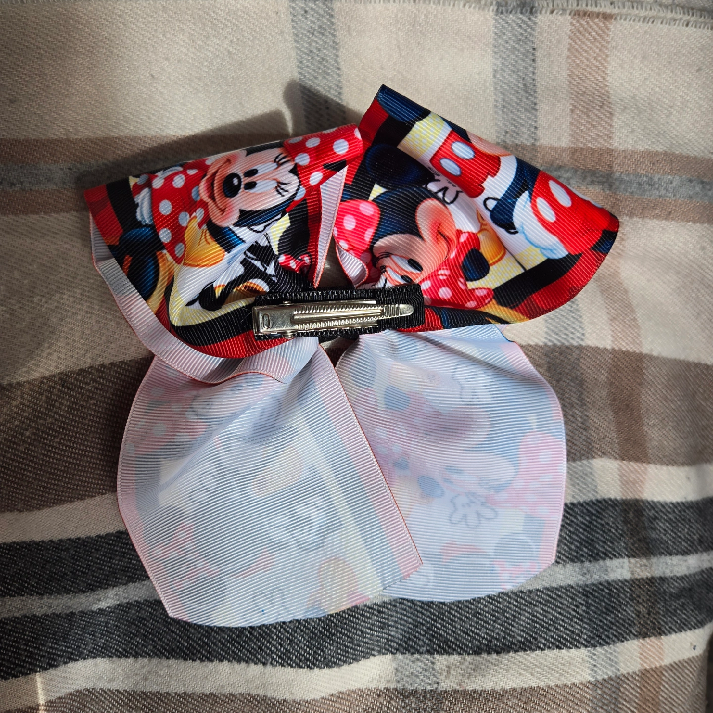 Super cute hair bow featuring Mickey and Minnie Mouse! Perfect for any Disney fan
