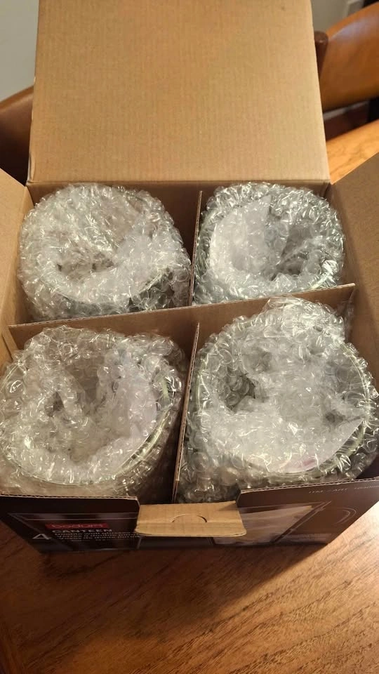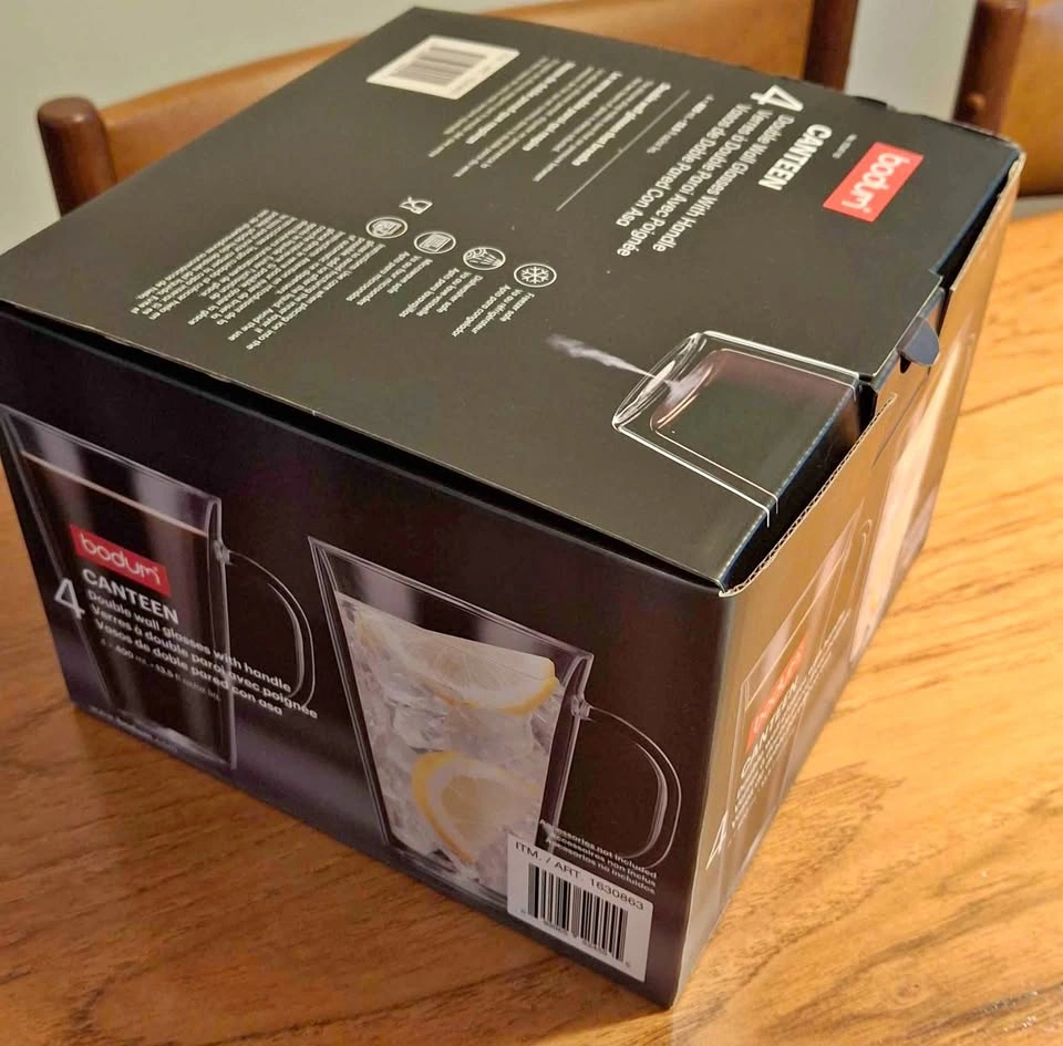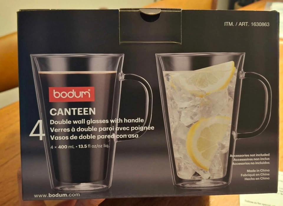 4 Double wall glasses with handle 400 mL New. Never used. Box is perfect. Smoke free home Pick up in Ajax. South of the 401 (Westney exit)