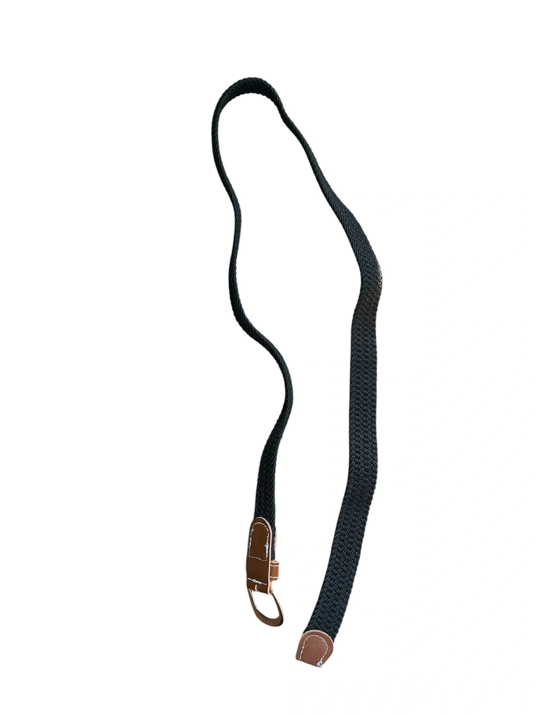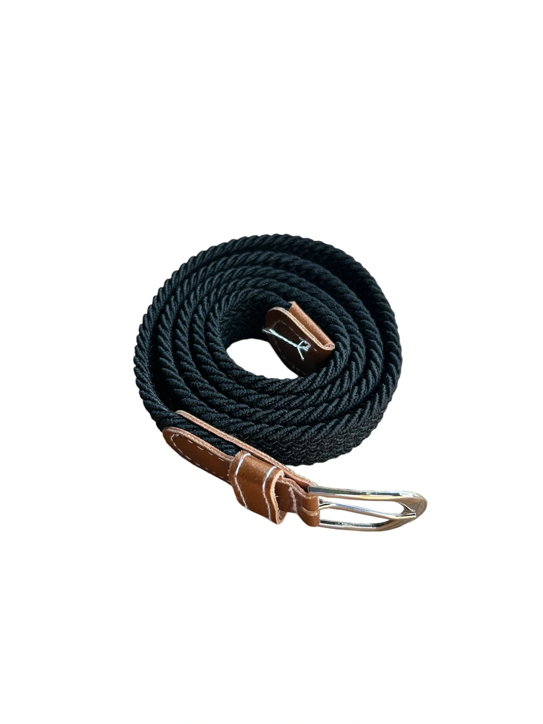 This is a stylish black braided belt, perfect for adding a touch of texture to your outfit! It features leather accents and a classic buckle, making it a versatile accessory for any wardrobe. The braided design offers flexibility and comfort, too