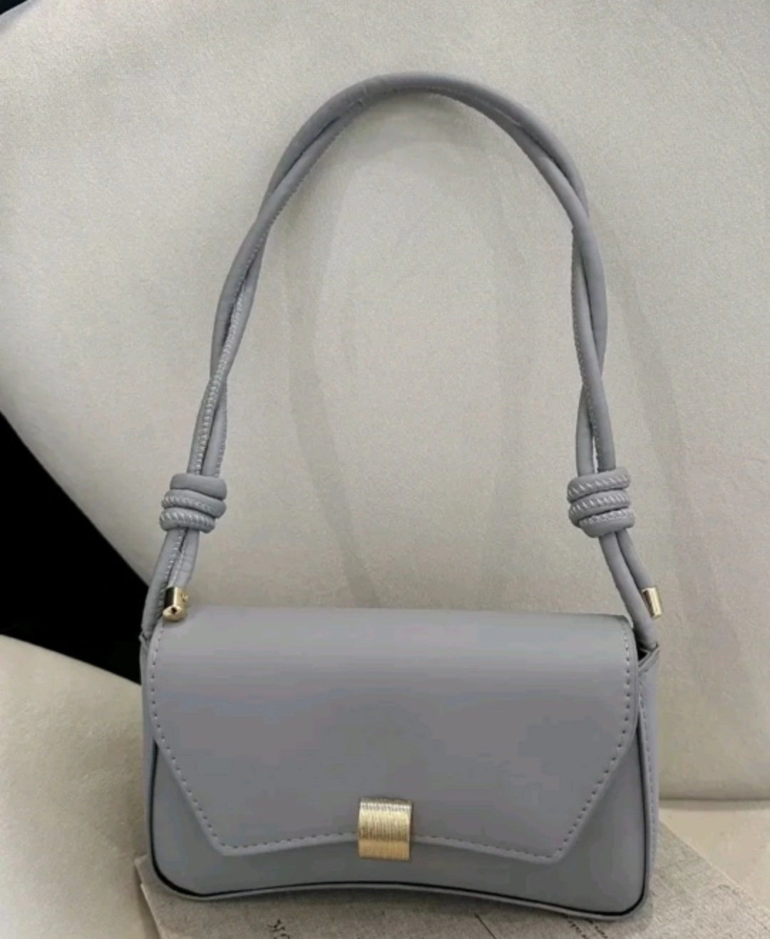 A cute grey shoulder bag purse with a unique twisted handle design! It features a gold clasp and a sleek, minimalist look. Perfect for adding a touch of elegance to any outfit. Modern Simple Style. Teen Woman Apparel Fashion Trendy Fall Gift Girl Handbag.