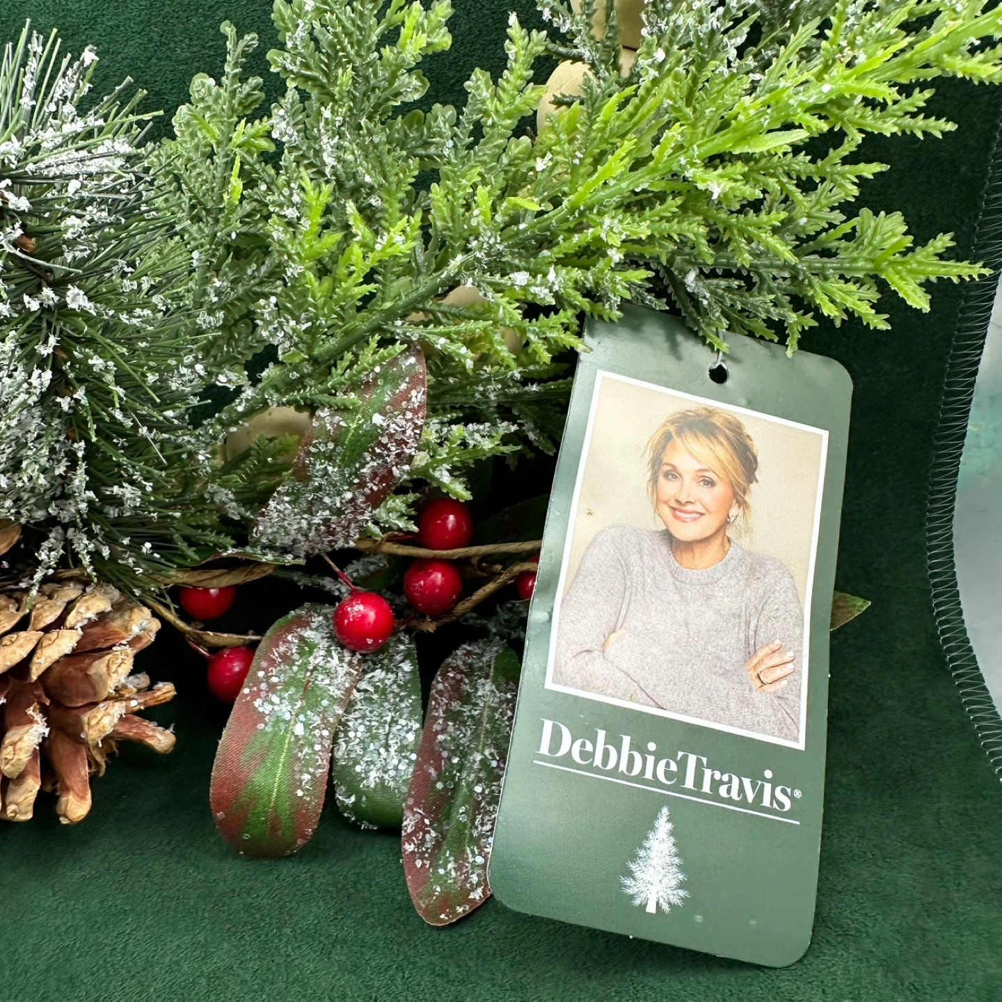 Brand new Debbie Travis 15” diameter wood wreath, with original tag Pickup: 1. Avenue Rd & St Clair Ave condo (lobby or driveway) or 2. St Clair/Yonge subway station (outside) Sorry no deliveries, other meetup spots or holds (will hold only during your travel time for a confirmed pickup)