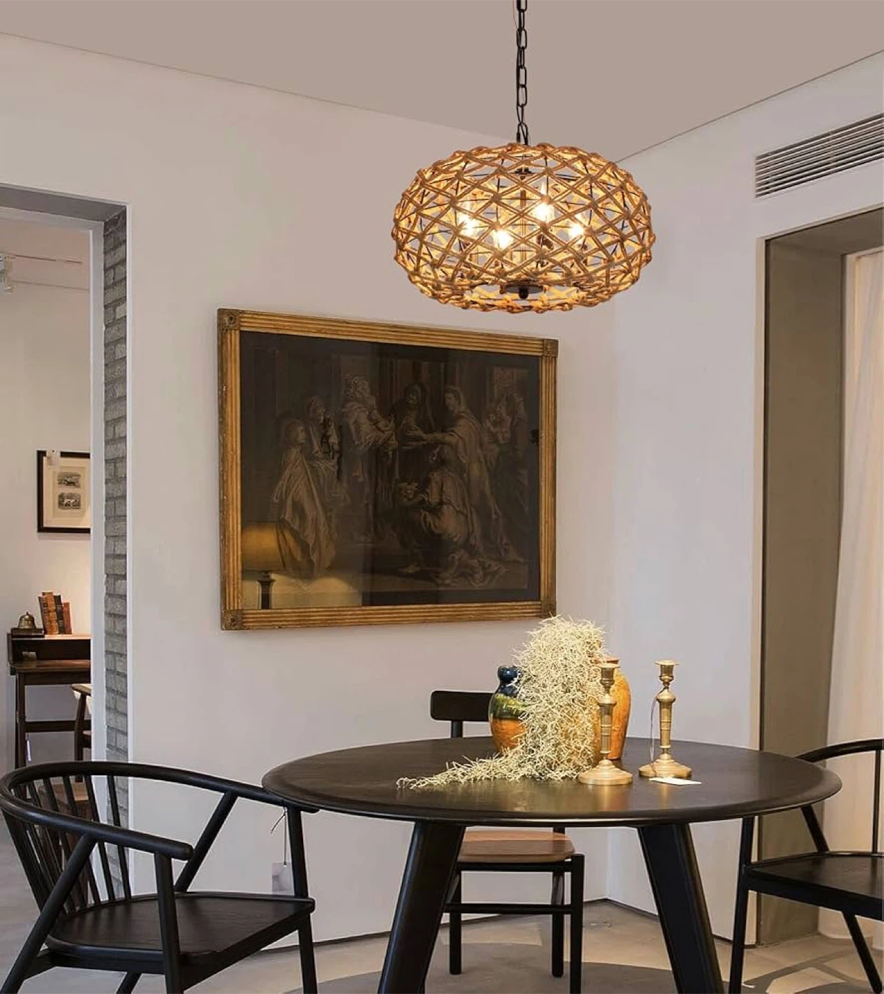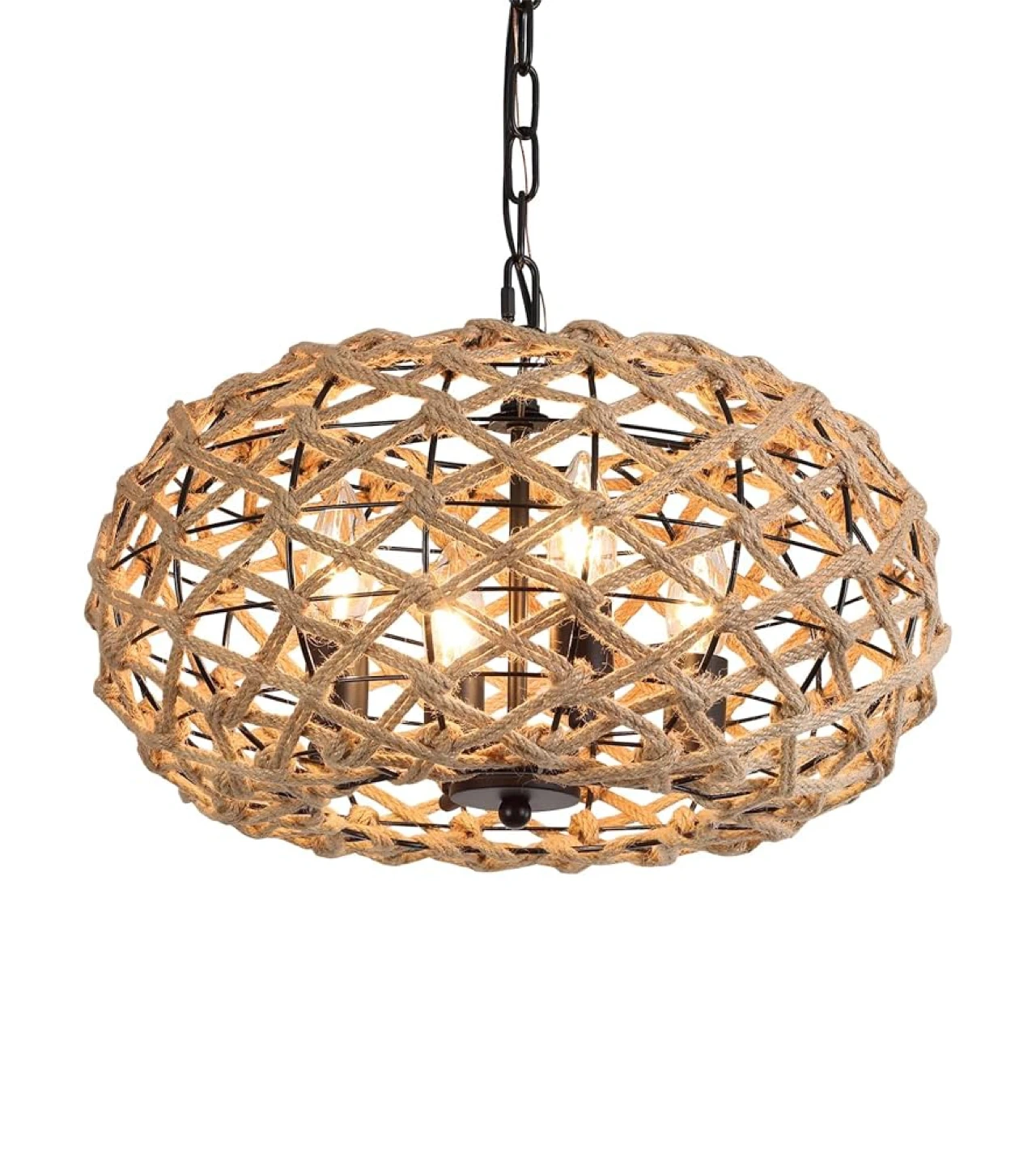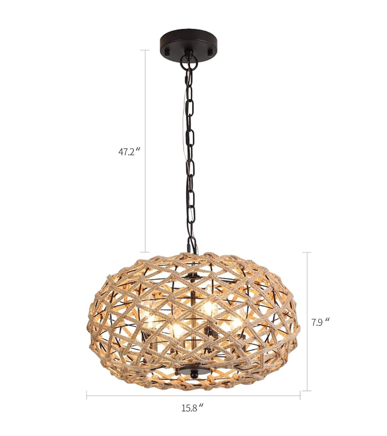 Add a touch of rustic charm to your home with this lovely AMZASA rattan pendant light! This fixture features a hand-woven rattan basket design, perfect for adding a coastal or farmhouse vibe to your dining room, kitchen, or living space. It accommodates 4 lights and has a unique woven texture. Dimensions are approximately 47.2" in height and 15.8" in diameter.