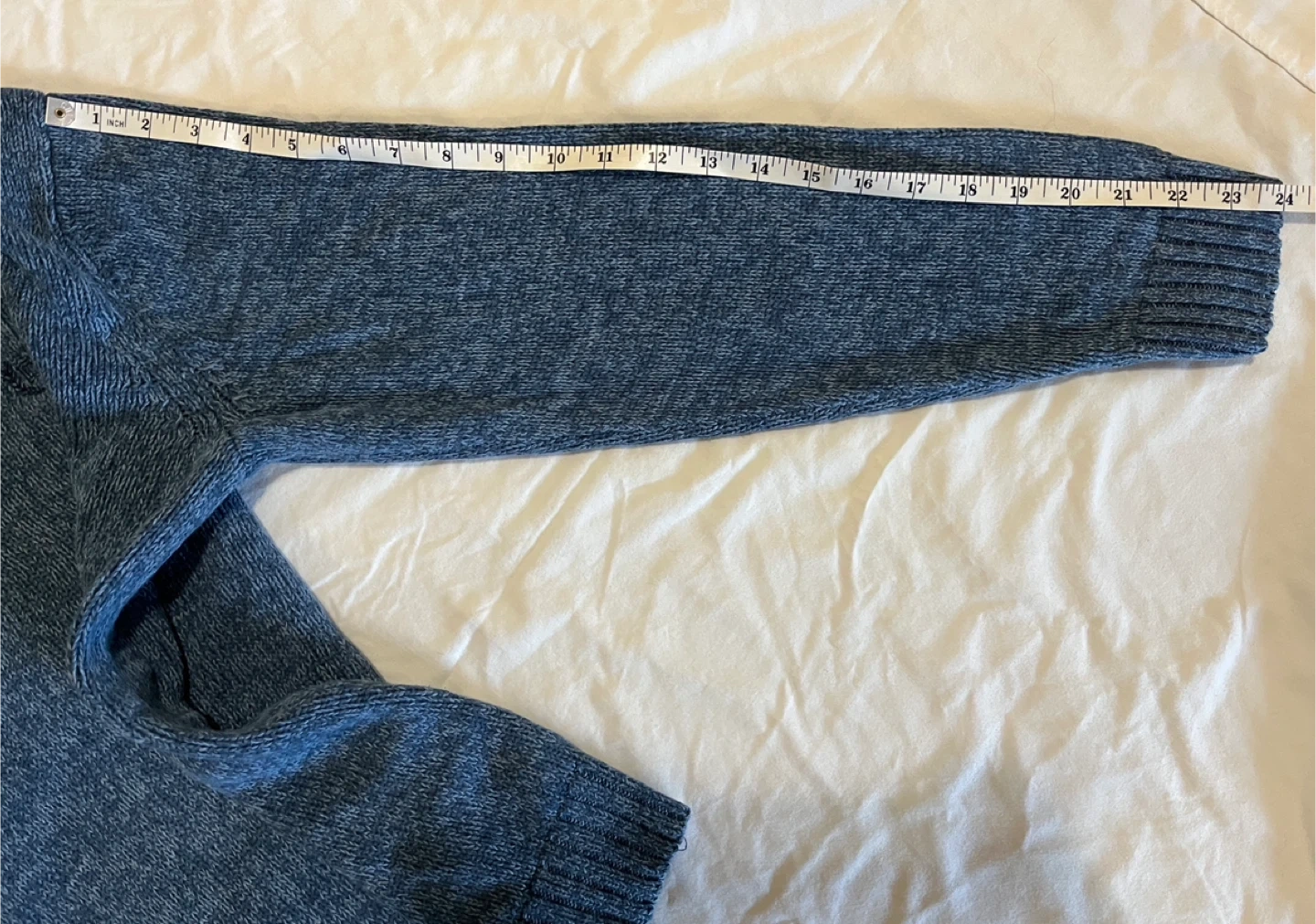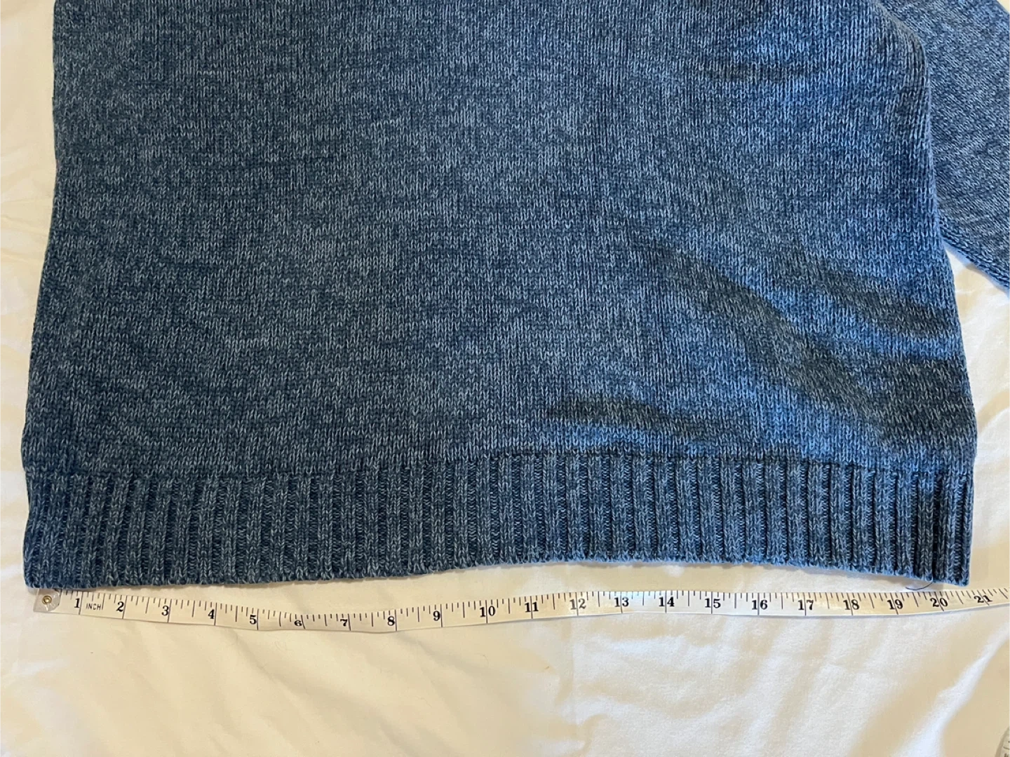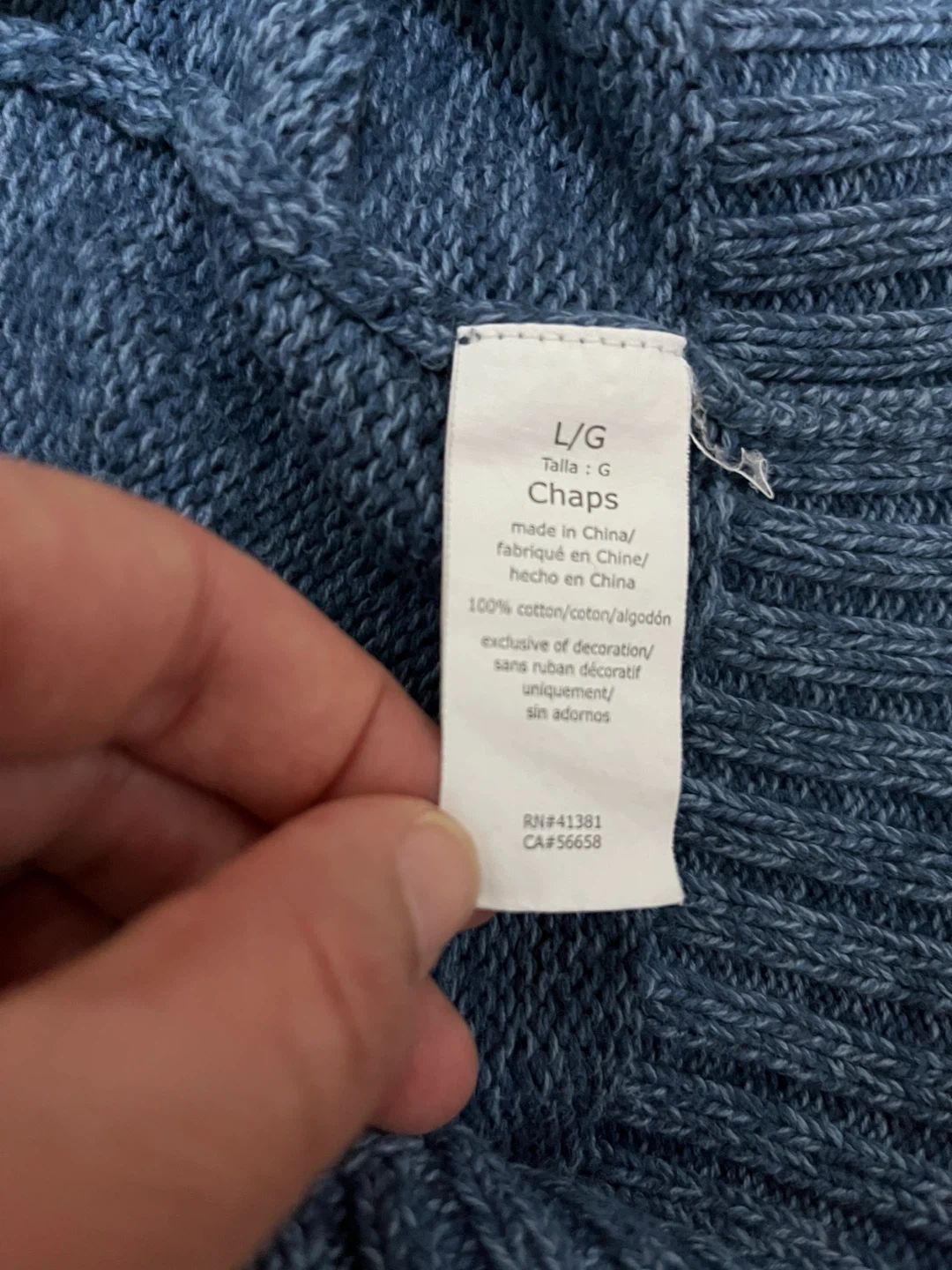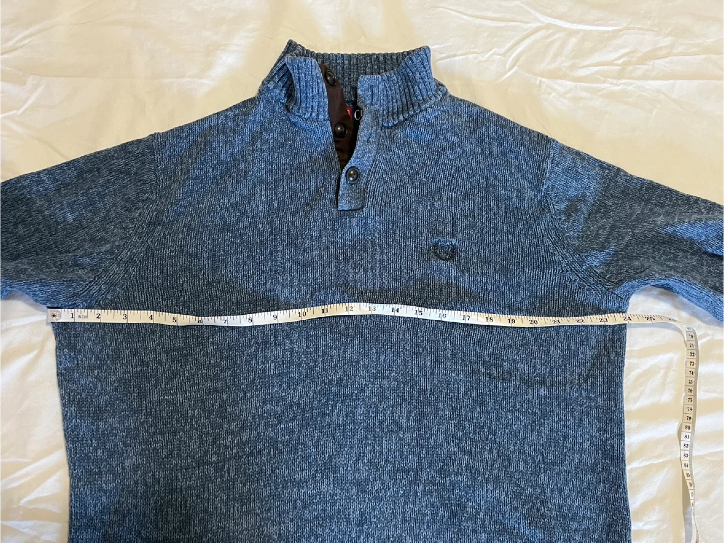 Chaps Ralph Lauren sweater, men’s size large, in marled ‘Wave Twist’ blue. Like new condition. Quarter mock neck with three buttons, ribbed hem and cuffs, embroidered chest logo, and faux suede elbow patches. Classic style. Measurements (flat): Pit to pit 24” | Length 25.5” | Sleeve 24” | Bottom 20.5” Pickup in Oshawa - Harmony/Rossland area