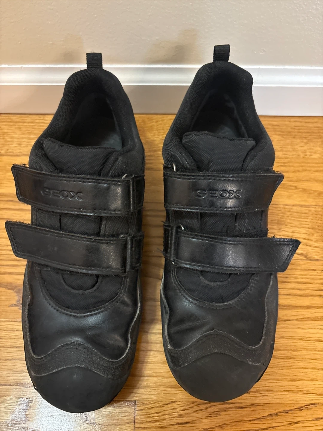 Selling a pair of Geox black sneakers. They are size 38. These sneakers feature a breathable design with thermal insulation and a multilayer construction. Water proof and very sturdy. They have a velcro strap closure. Excellent uniform shoe